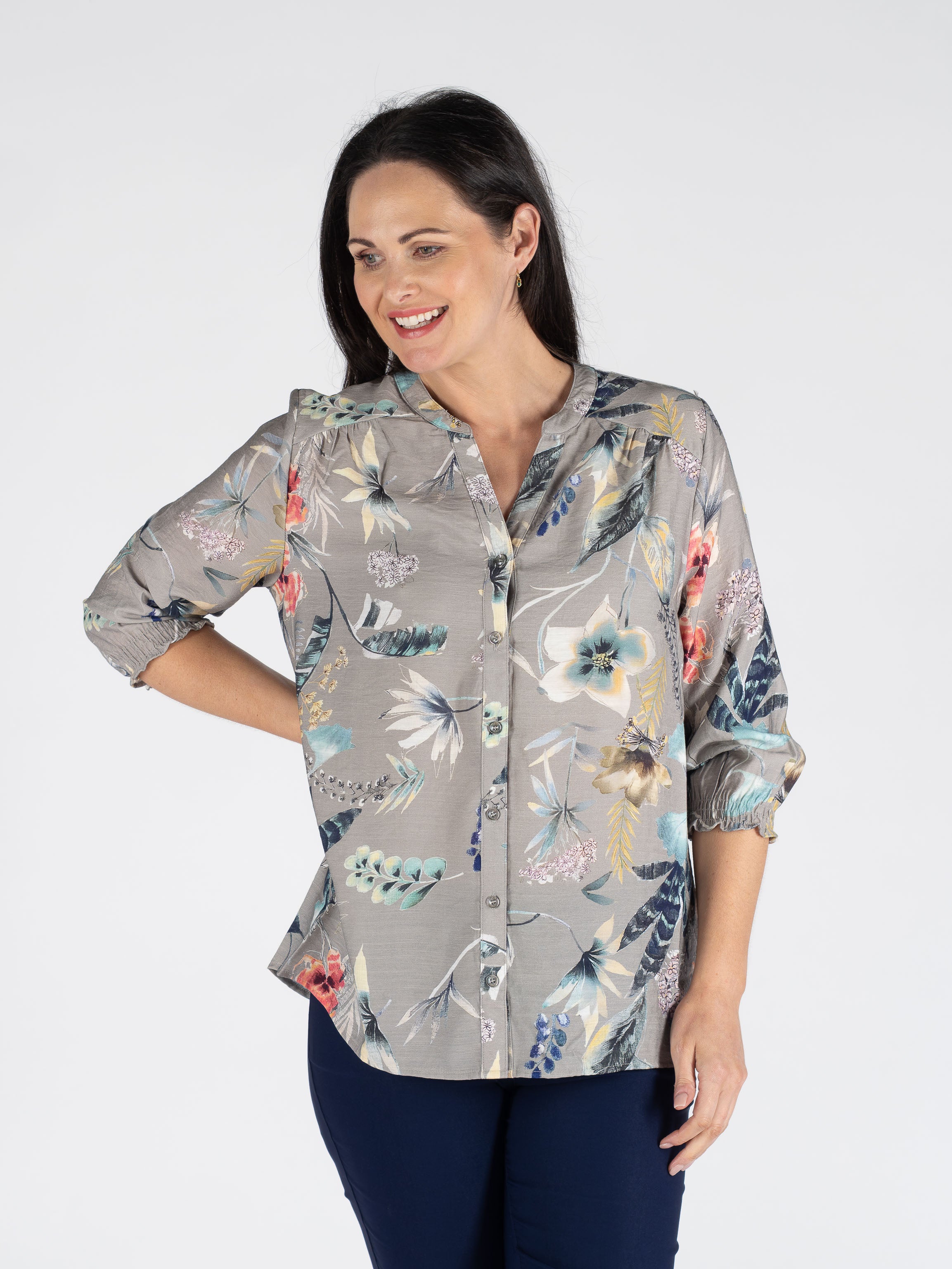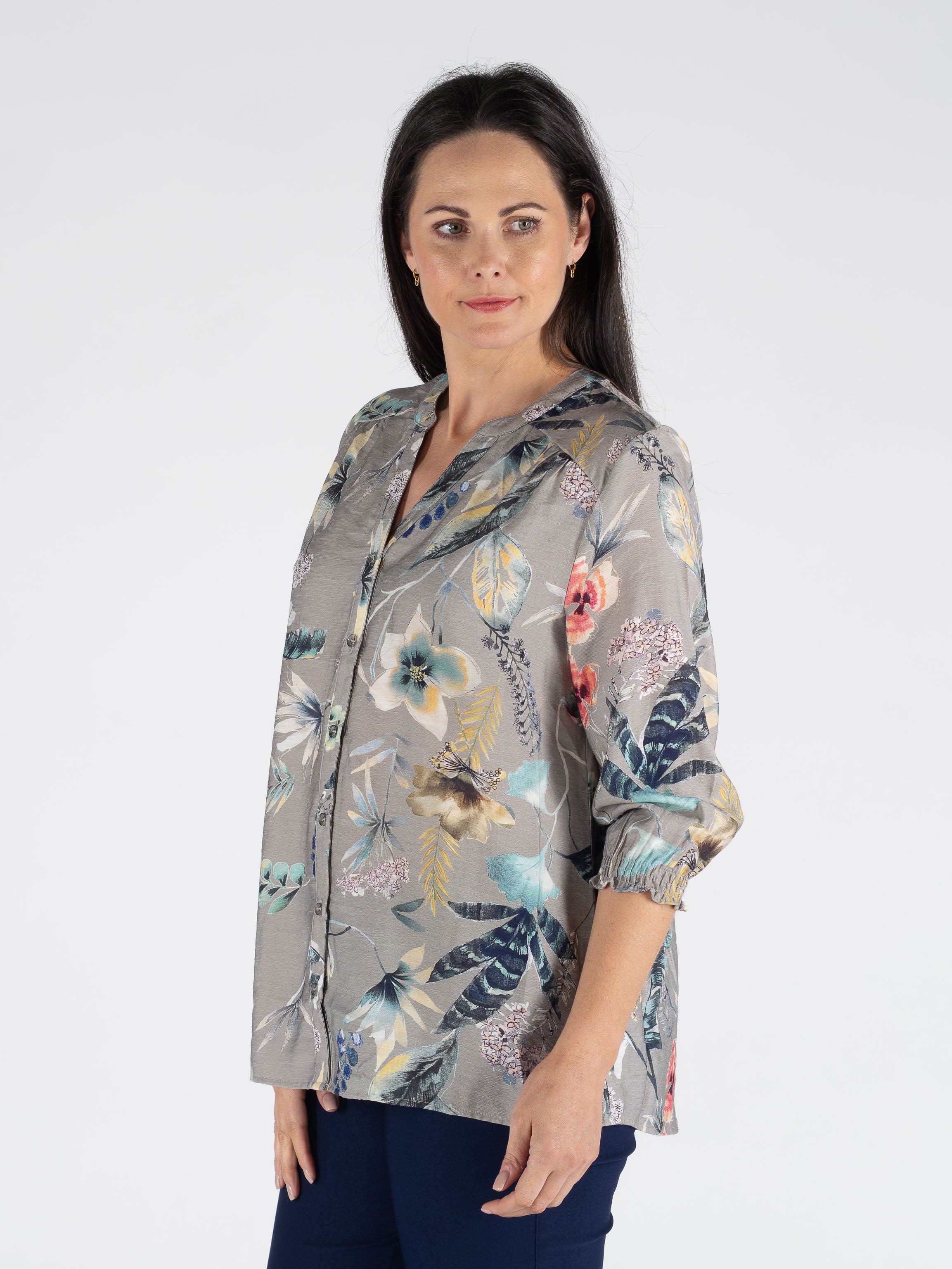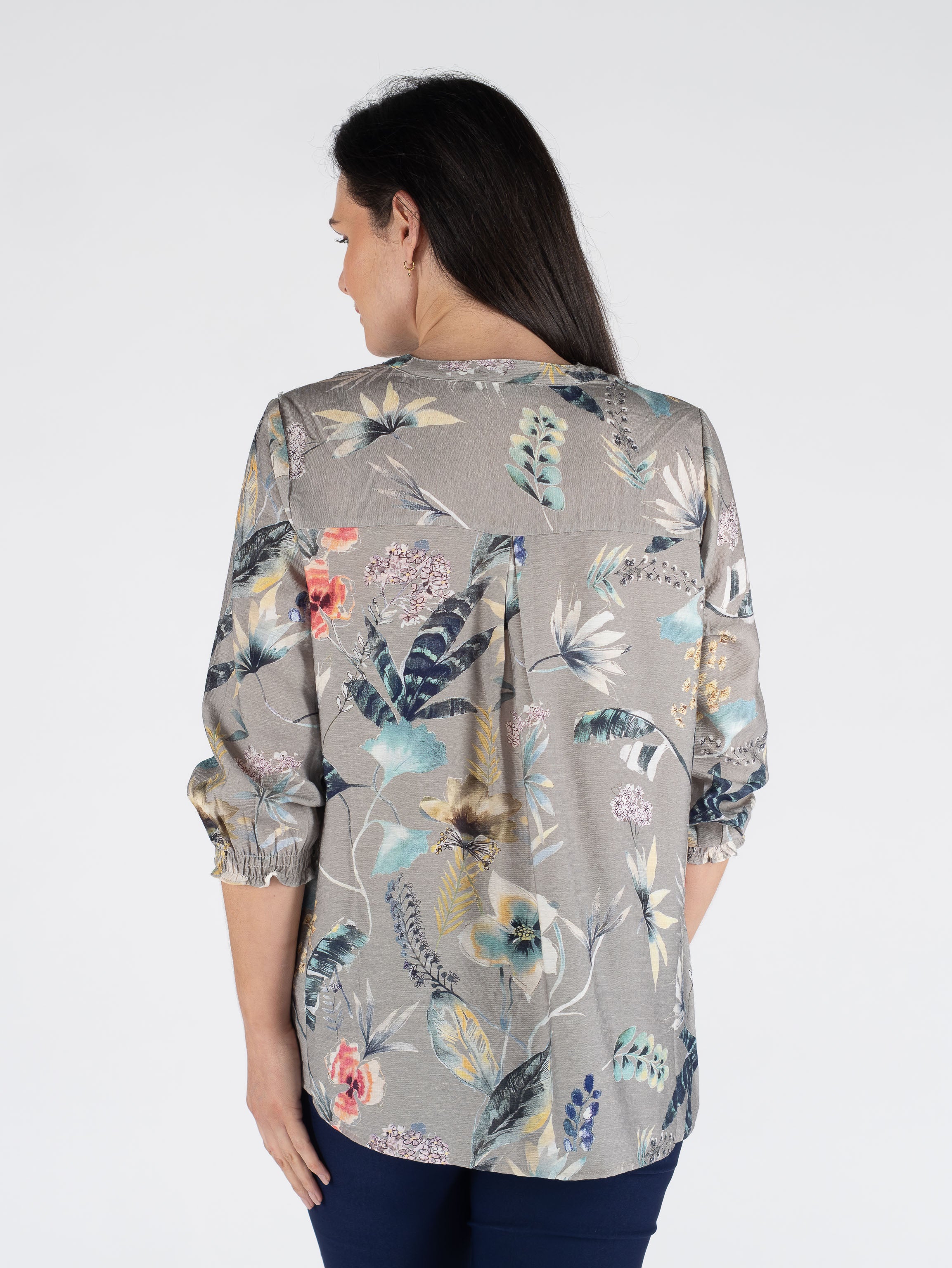 Bring a feminine touch to your everyday wardrobe with this flower print blouse. Designed with flattering 3/4 length sleeves finished with elasticated cuffs, it offers both comfort and style. Crafted from a soft viscose–nylon blend, the fabric drapes beautifully, making it an easy piece to wear from day to evening.