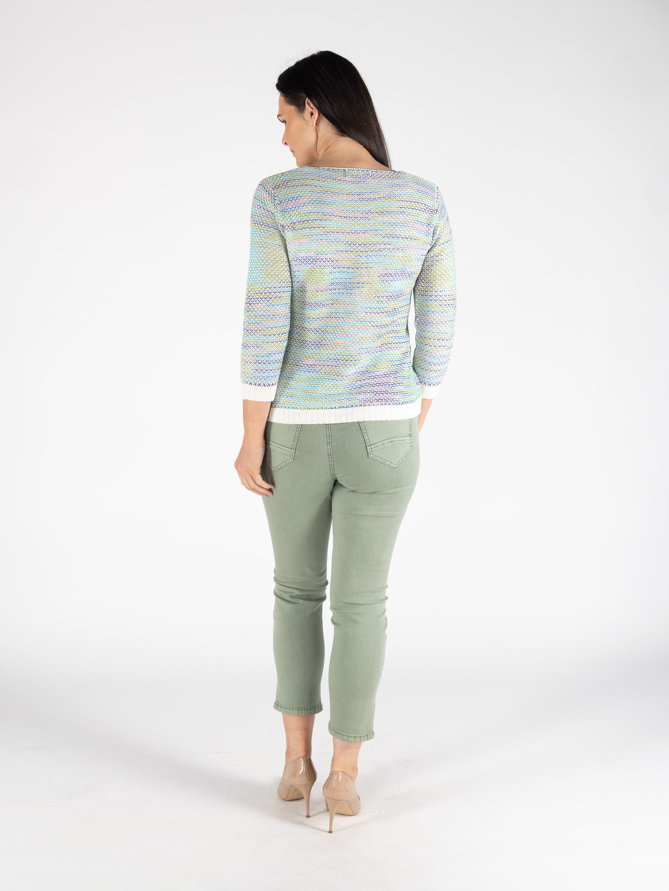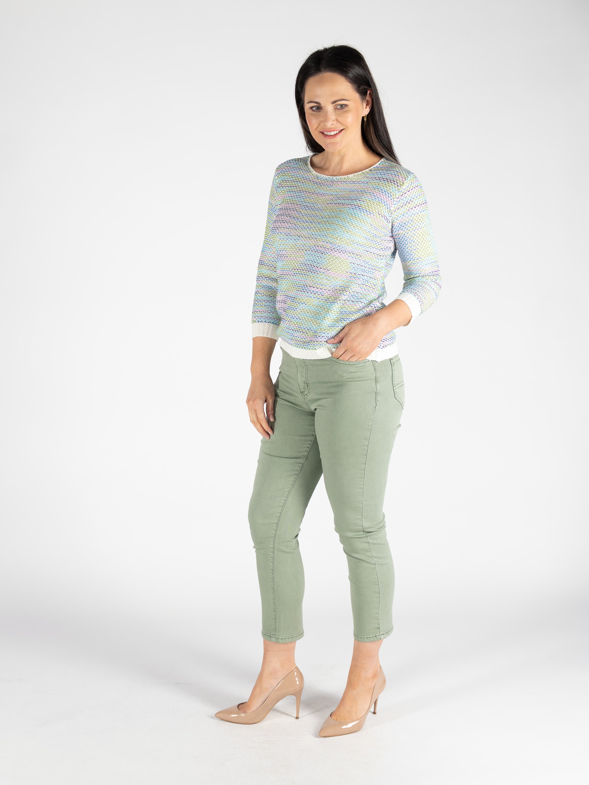 Green Multi Knit Jumper Contrast Cuff 3/4 sleeve