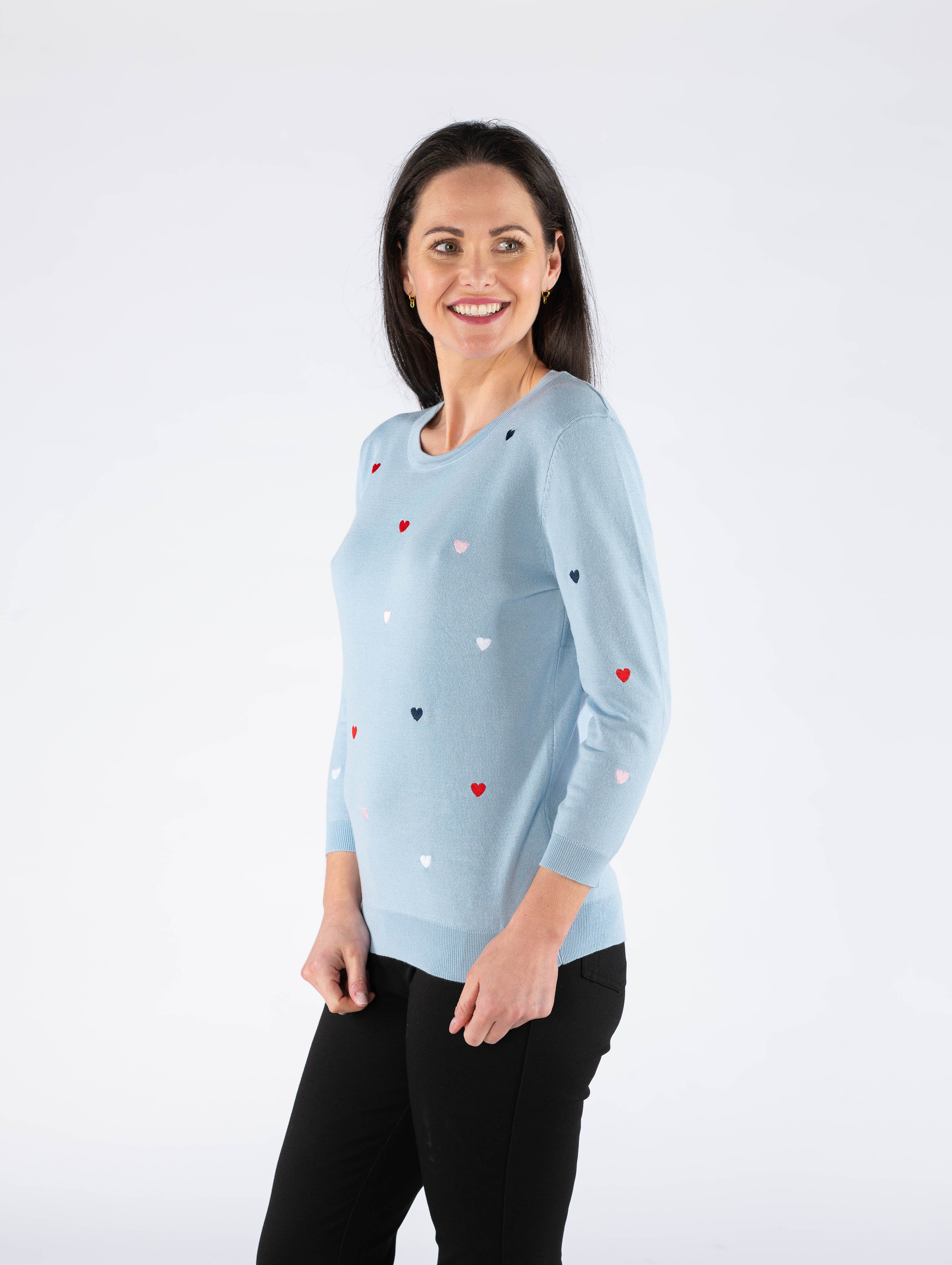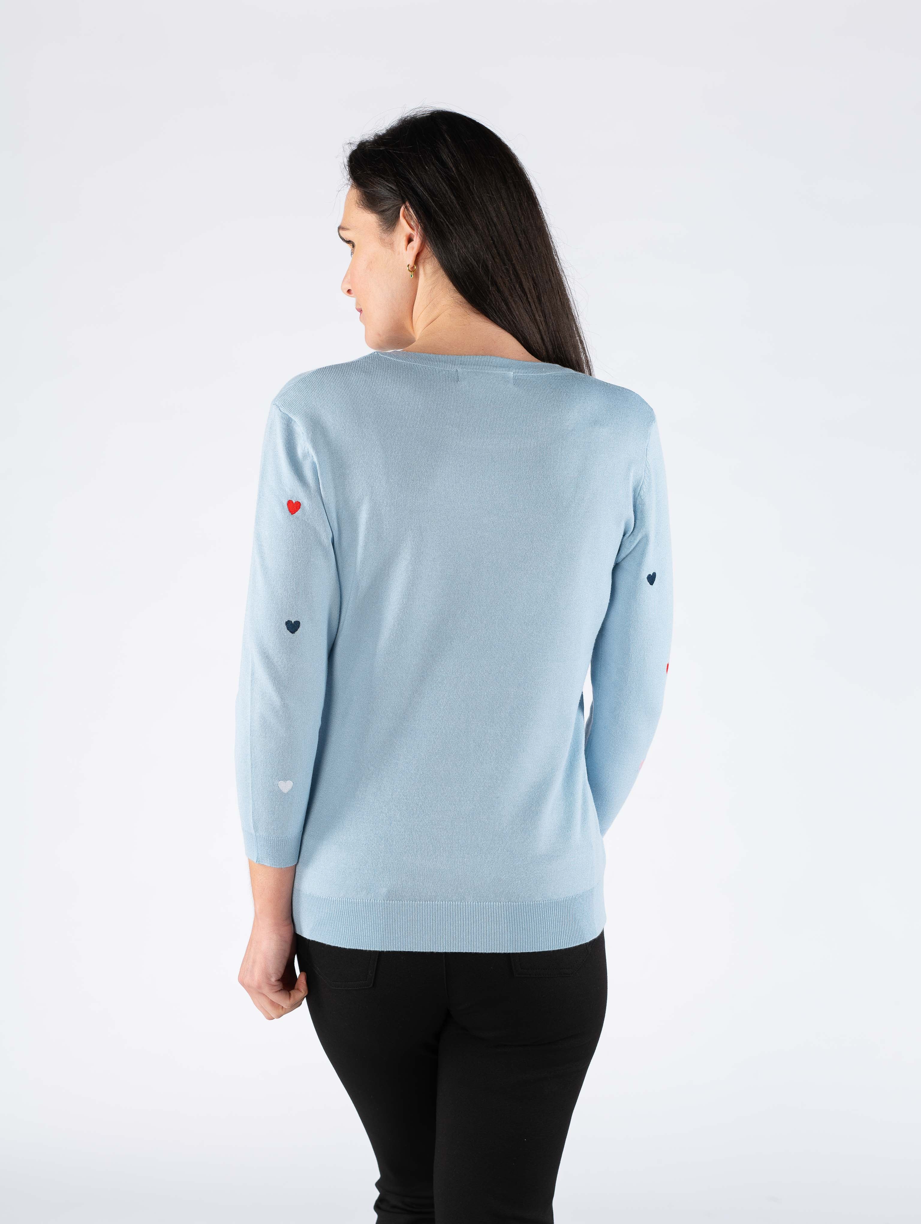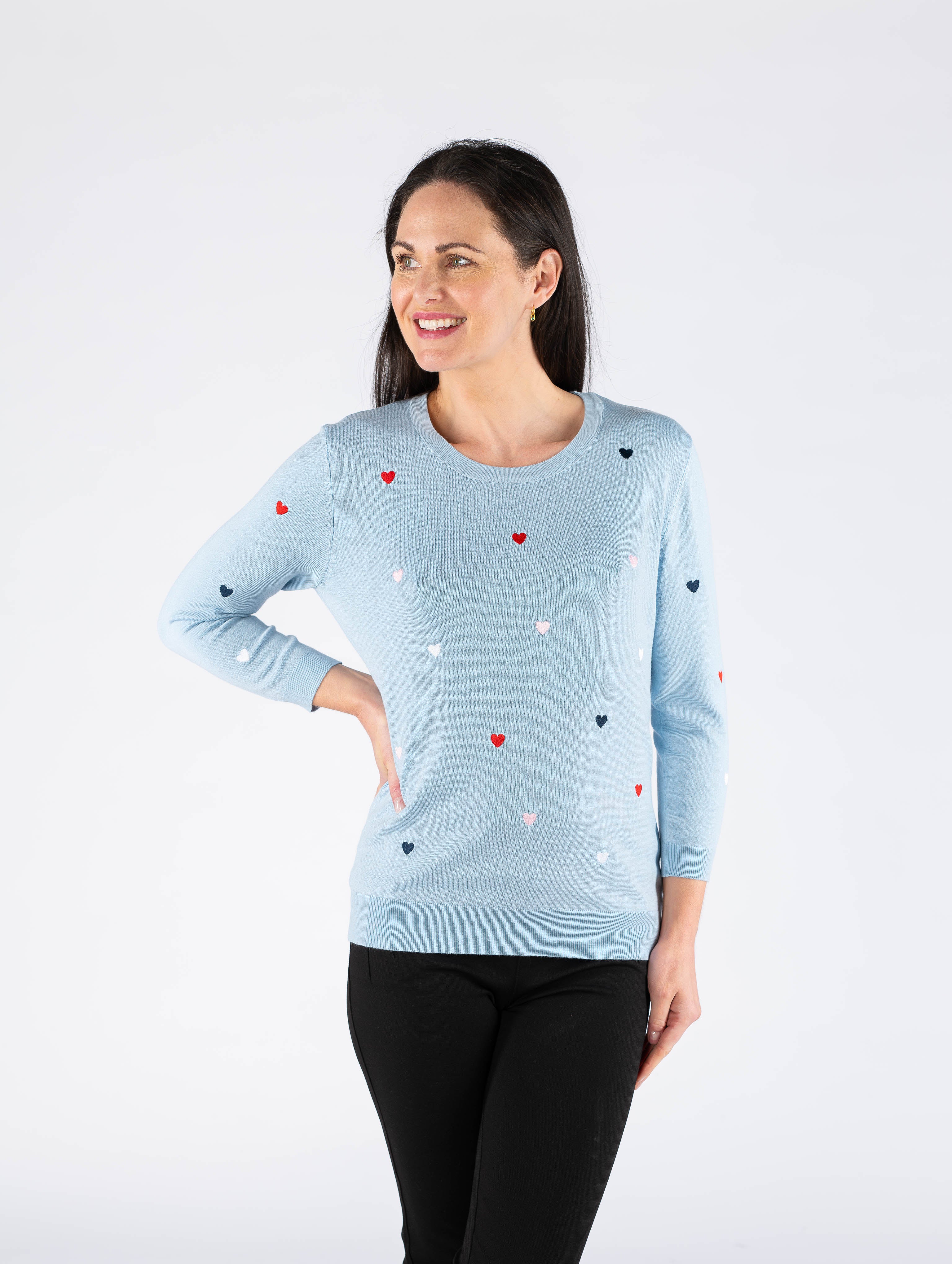HEART EMBROIDERY 3/4 SLEEVE JUMPER AND ROUND NECK