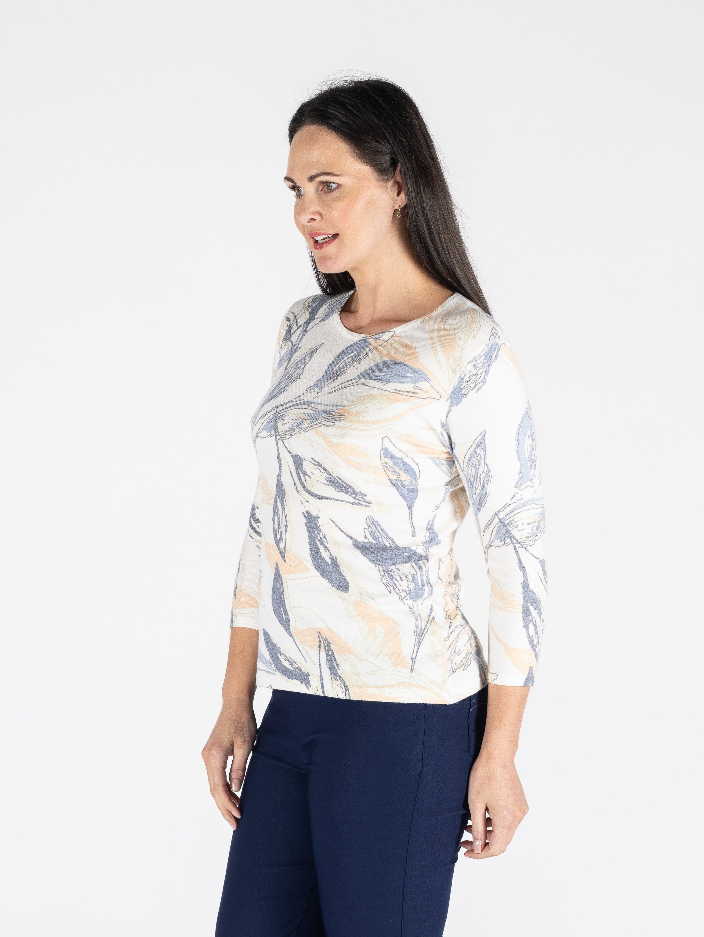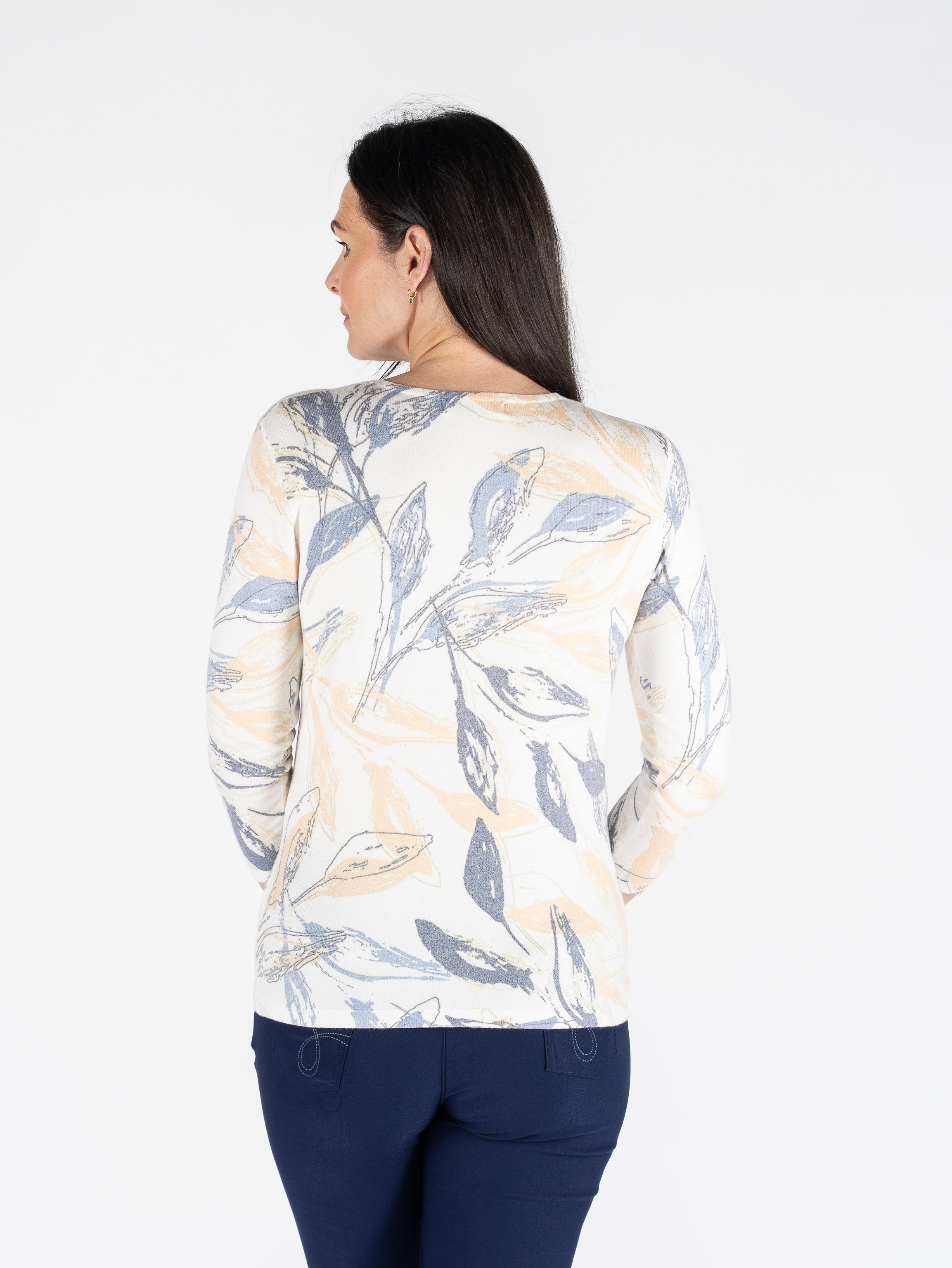 LEAF PRINT JUMPER ROUND NECK 3/4 SLEEVE