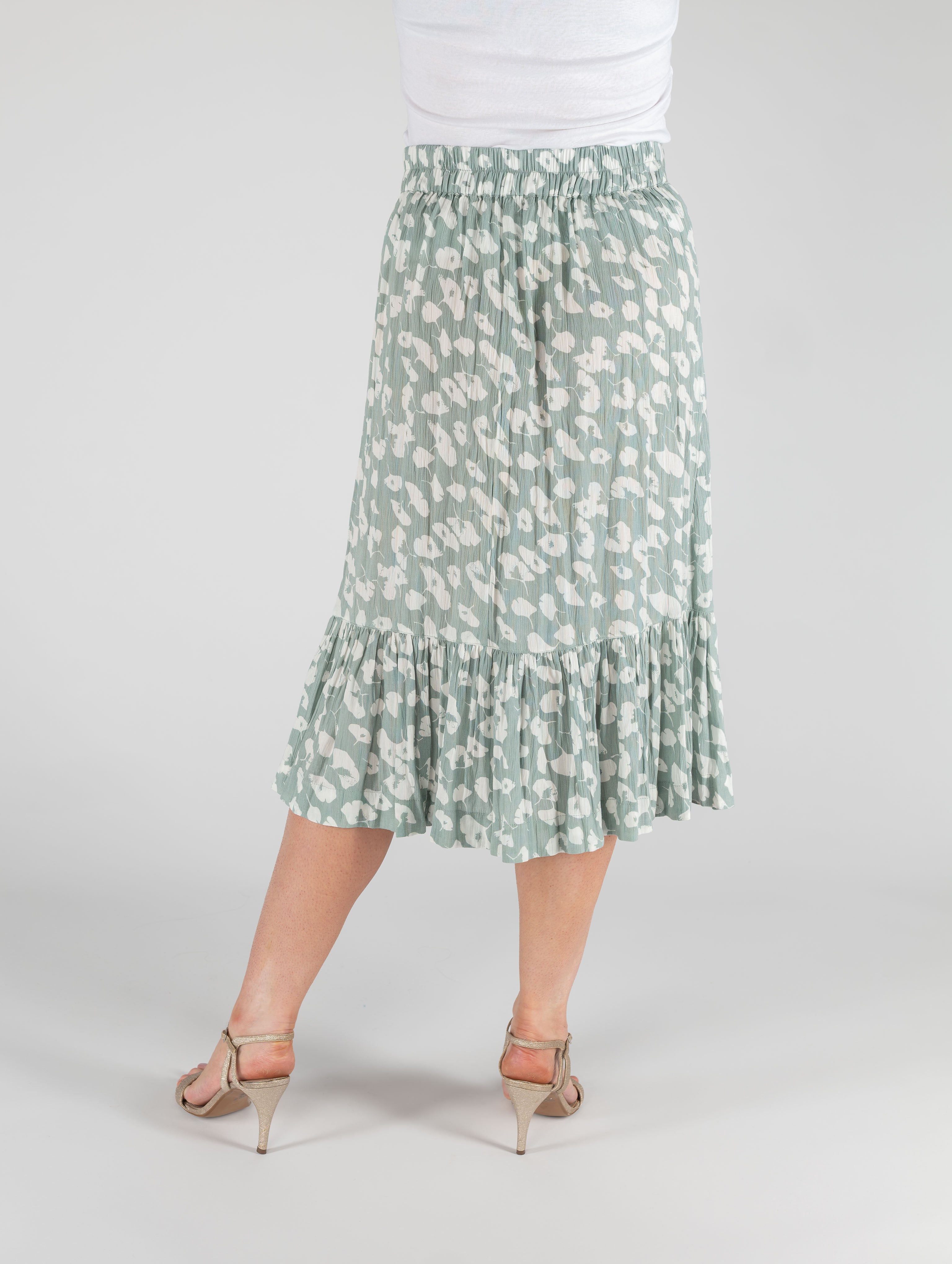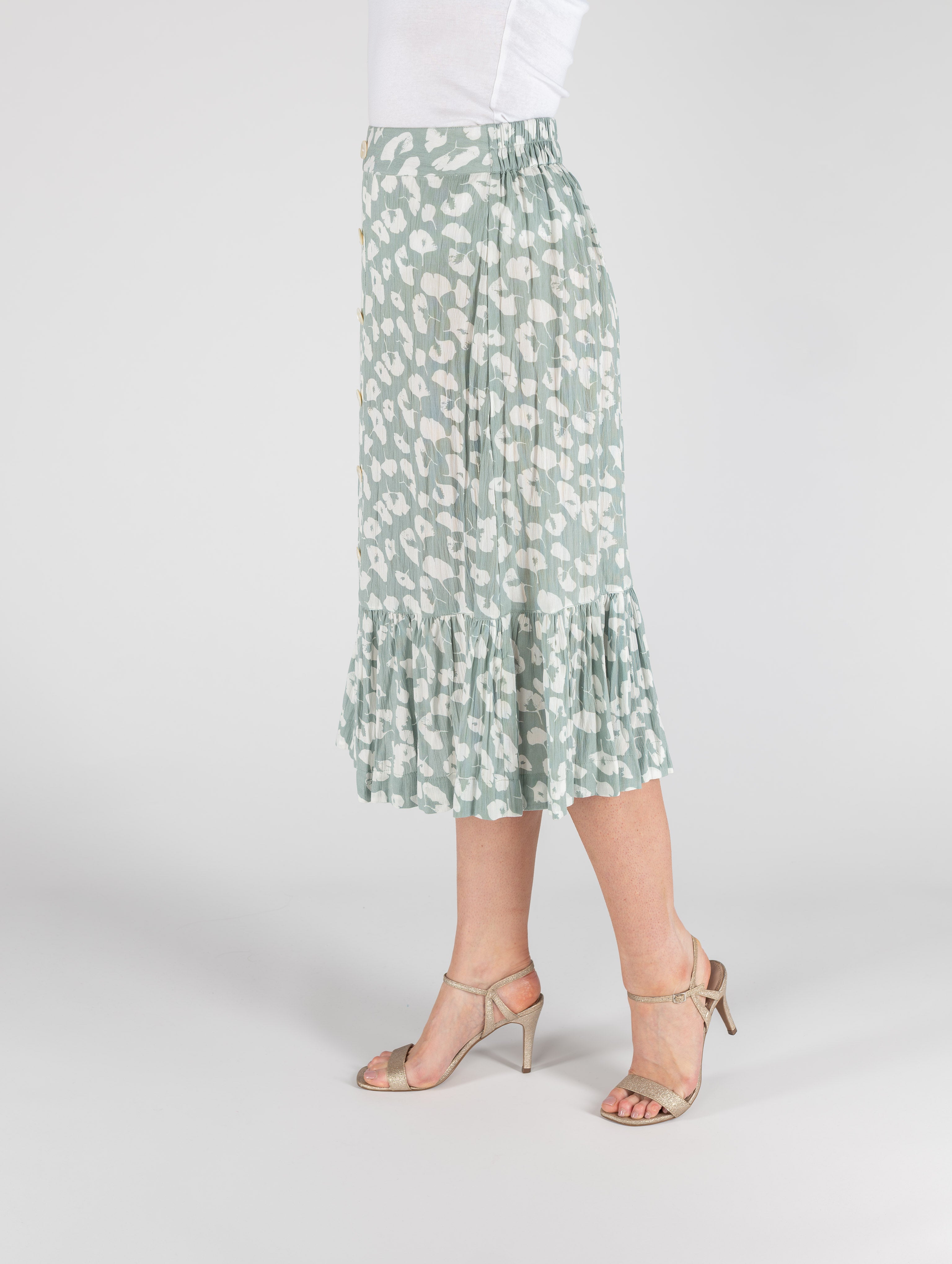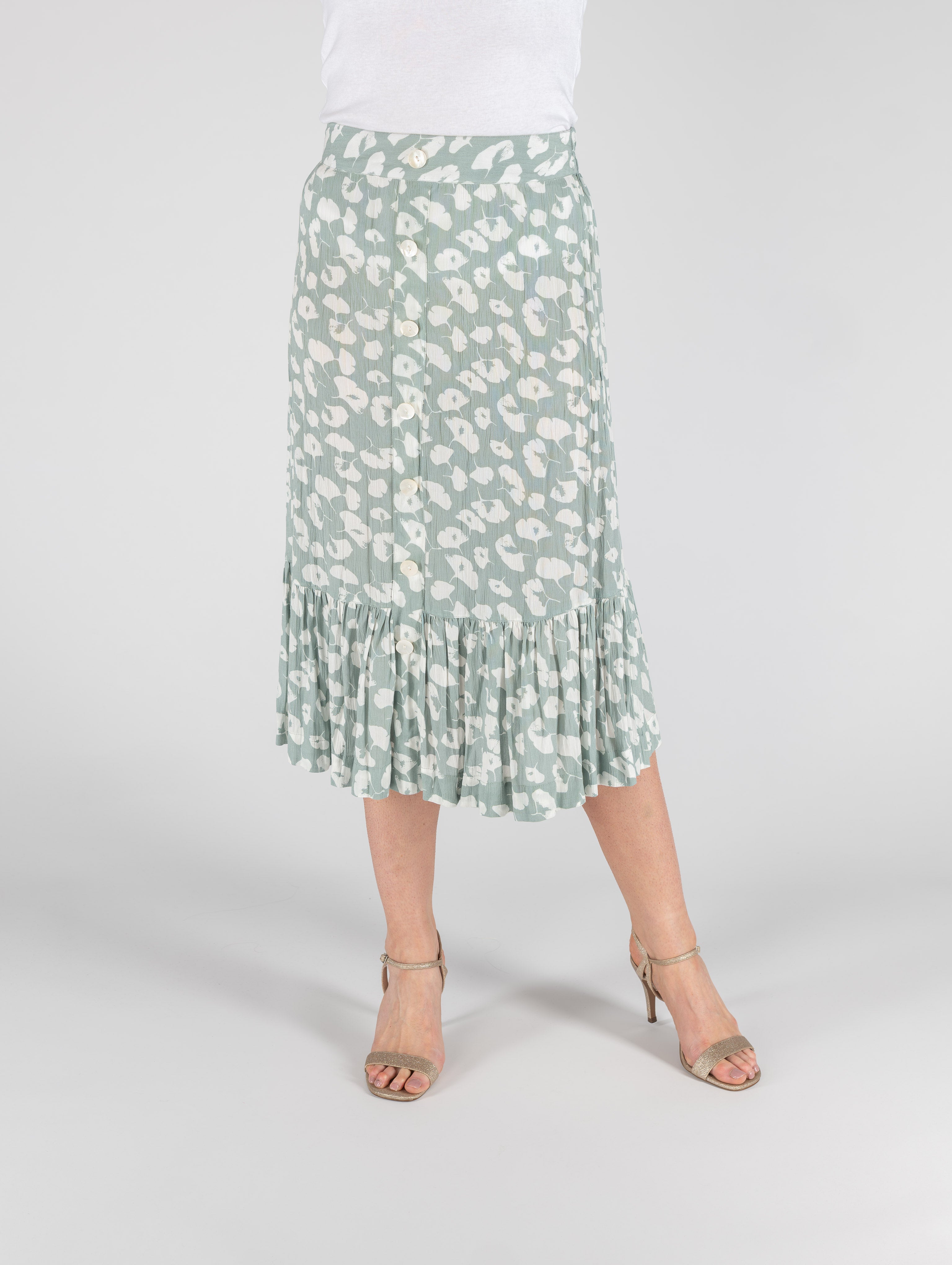 MINT PRINT FRONT BUTTON CRINKLE SKIRT BOTTOM FRILL