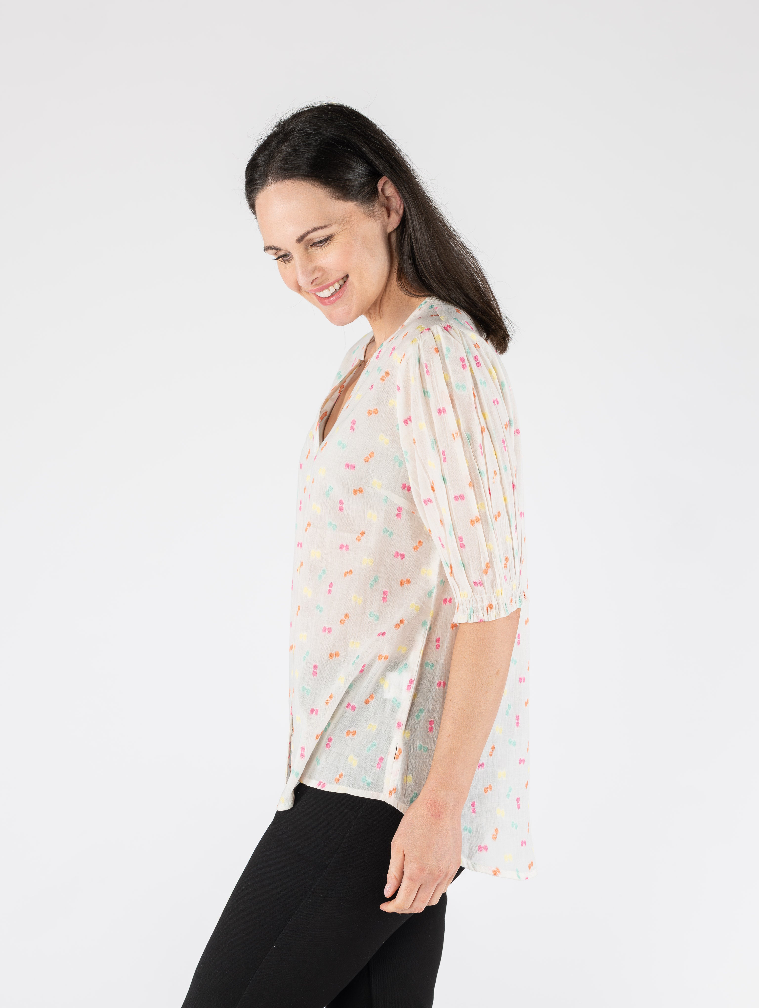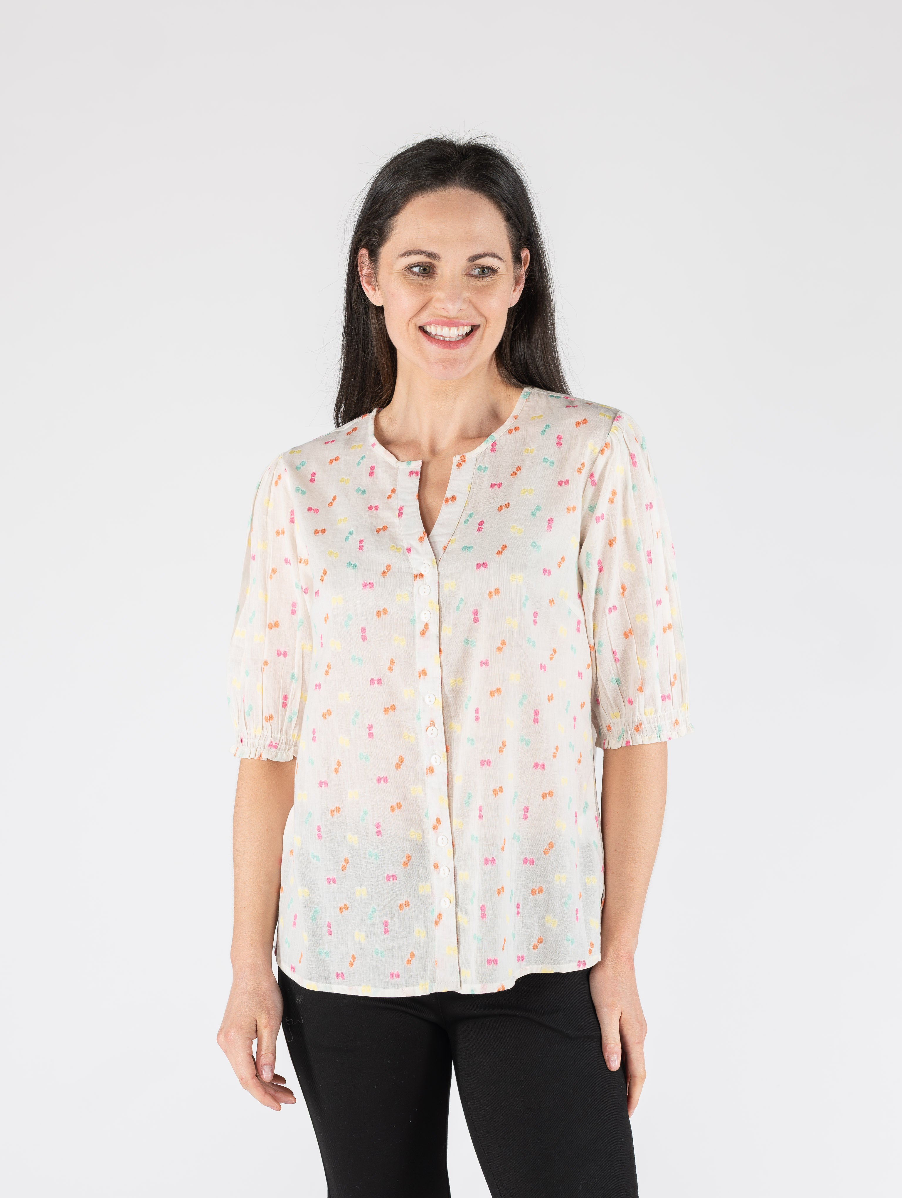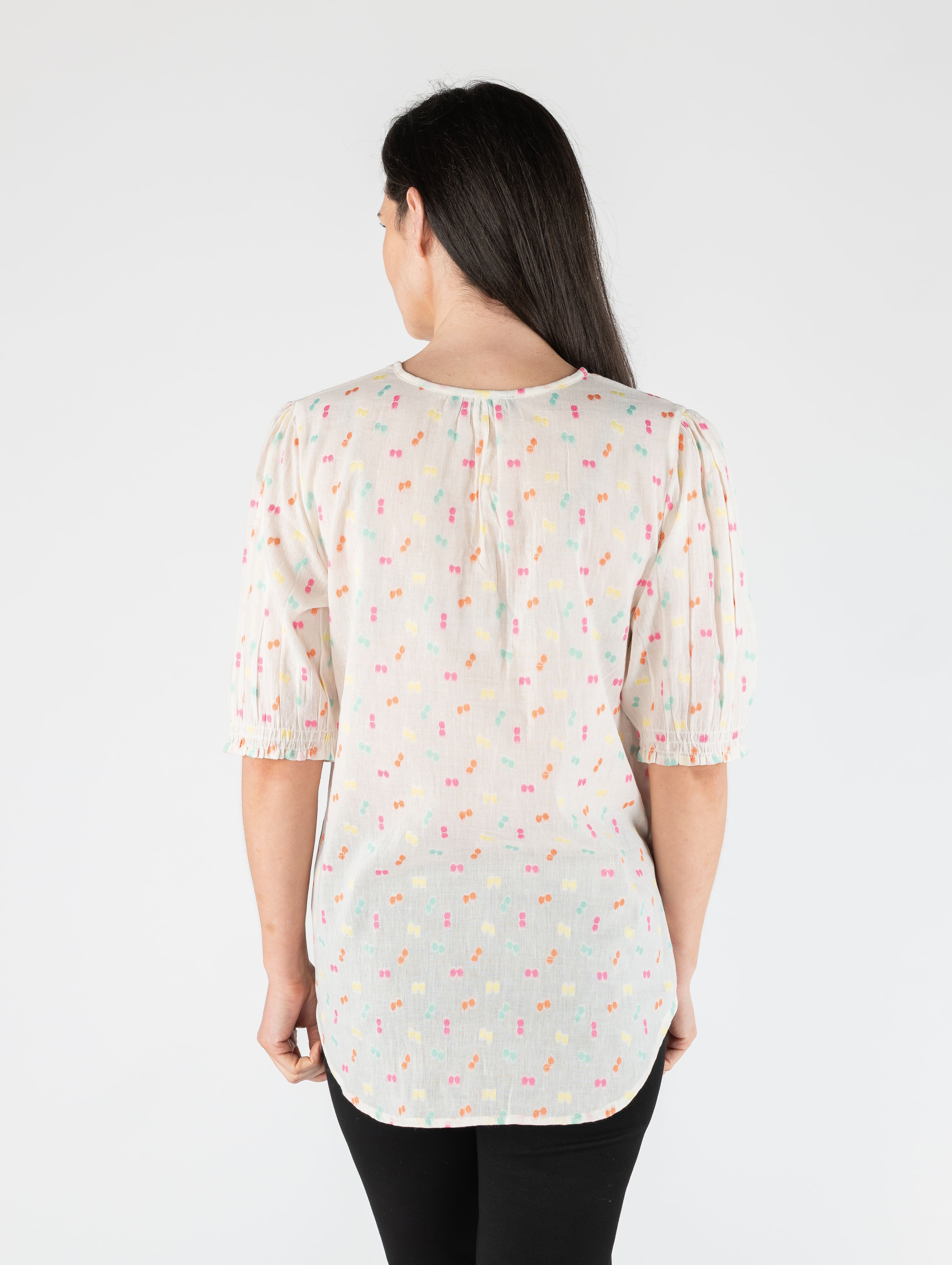 MULTI SPOT BLOUSE ROUND NECK WITH MID SLEEVE