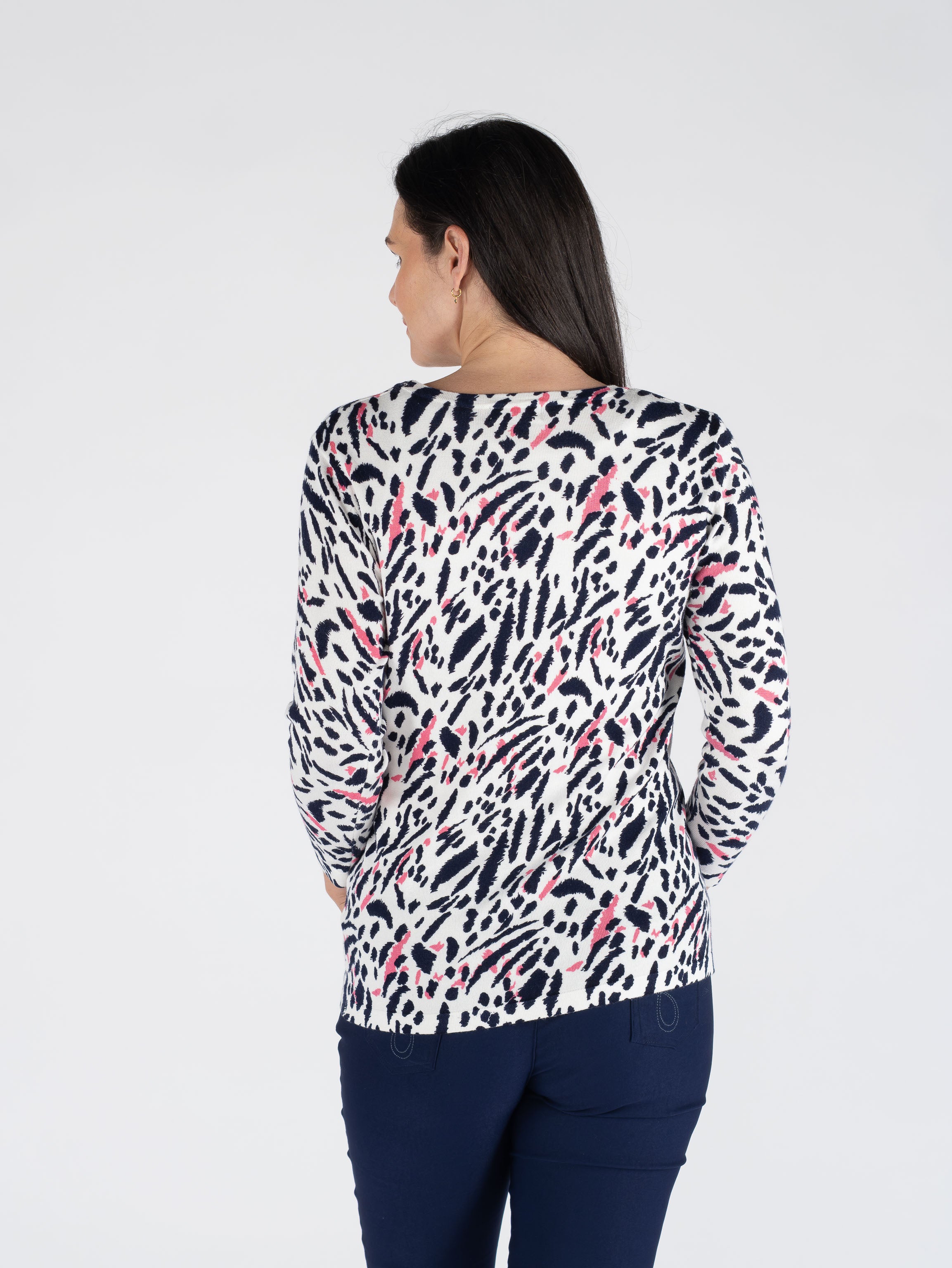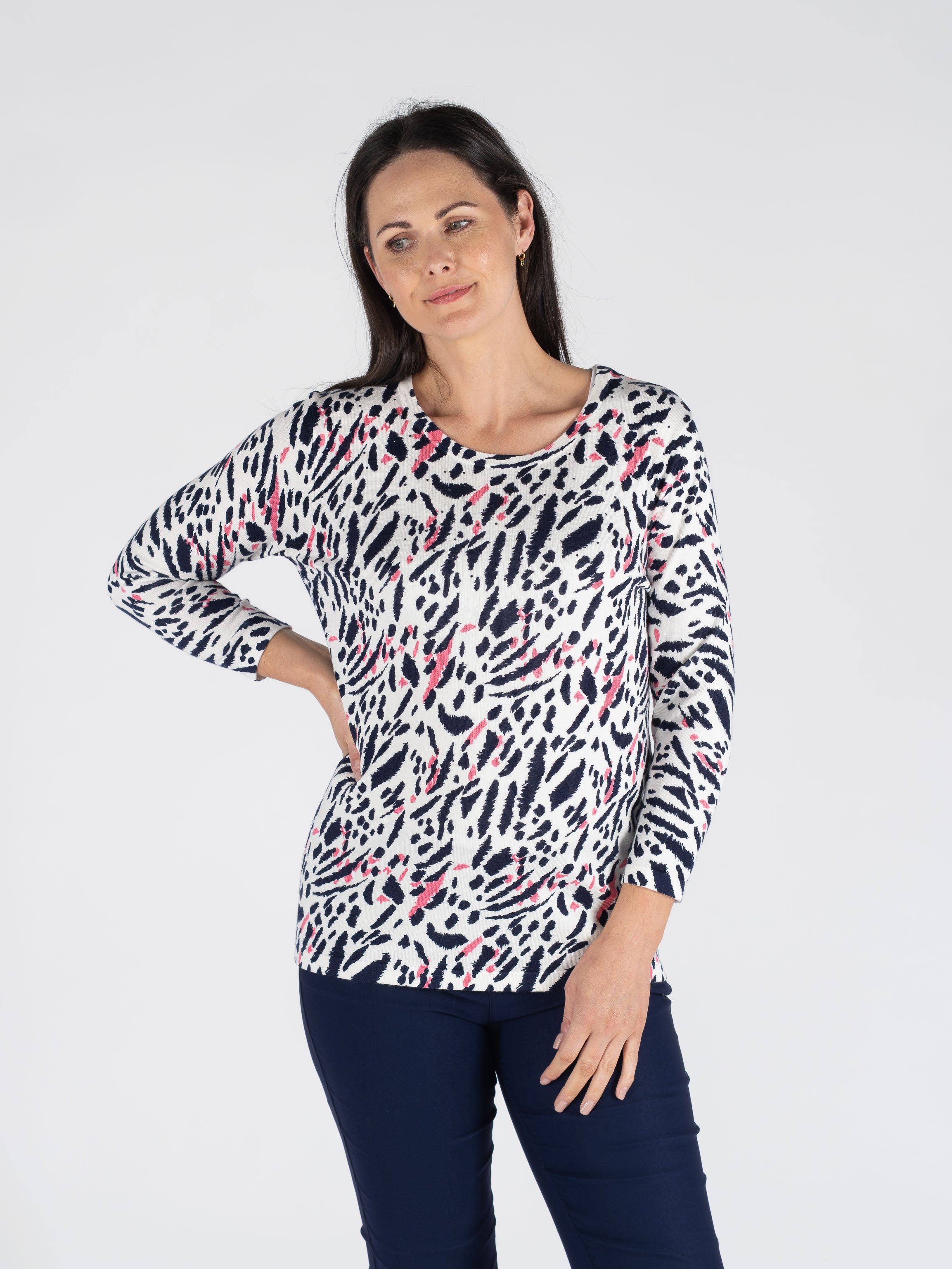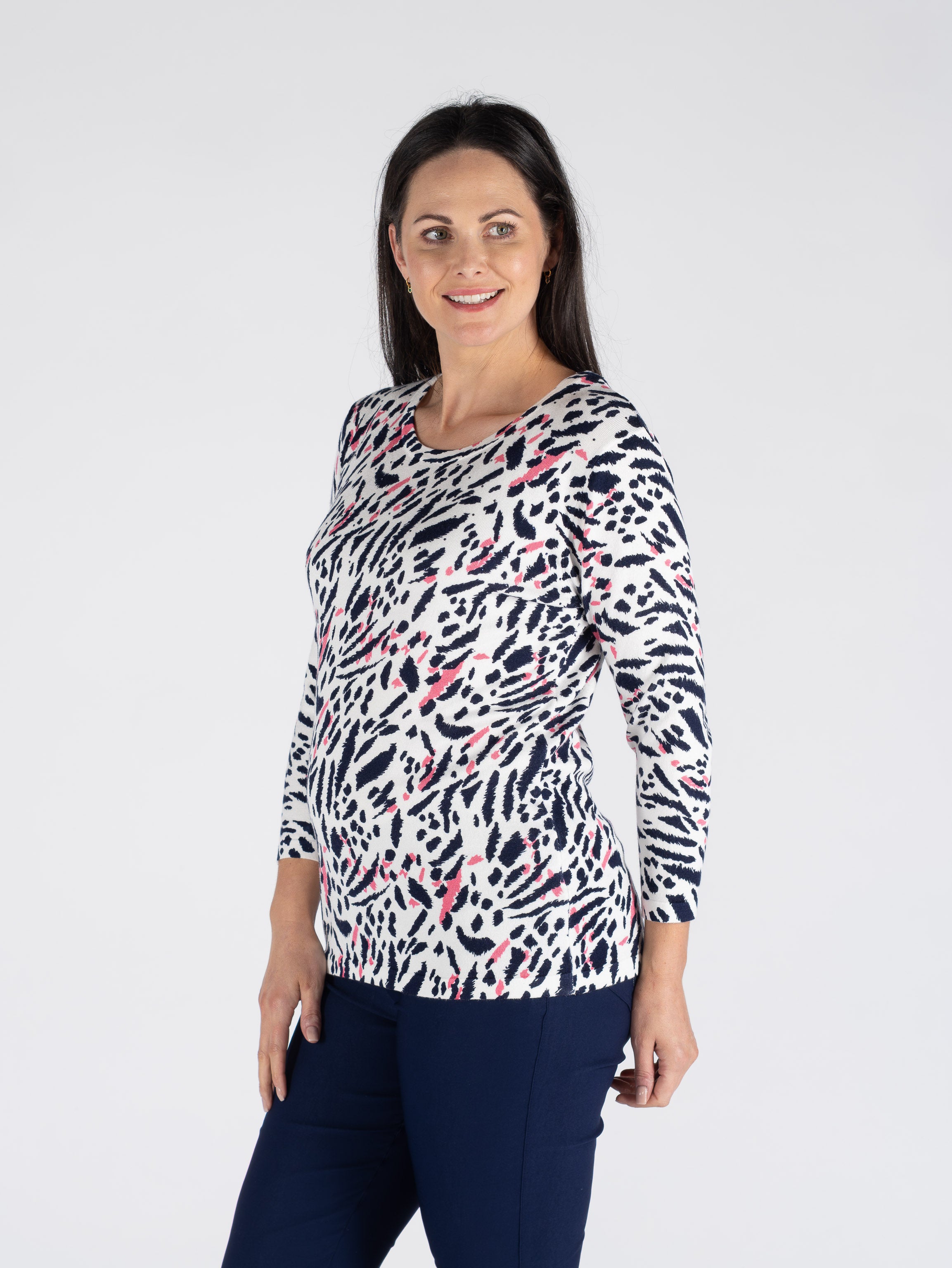 PINK NAVY ANIMAL PRINT JUMPER ROUND NECK 3/4 SLEEVE