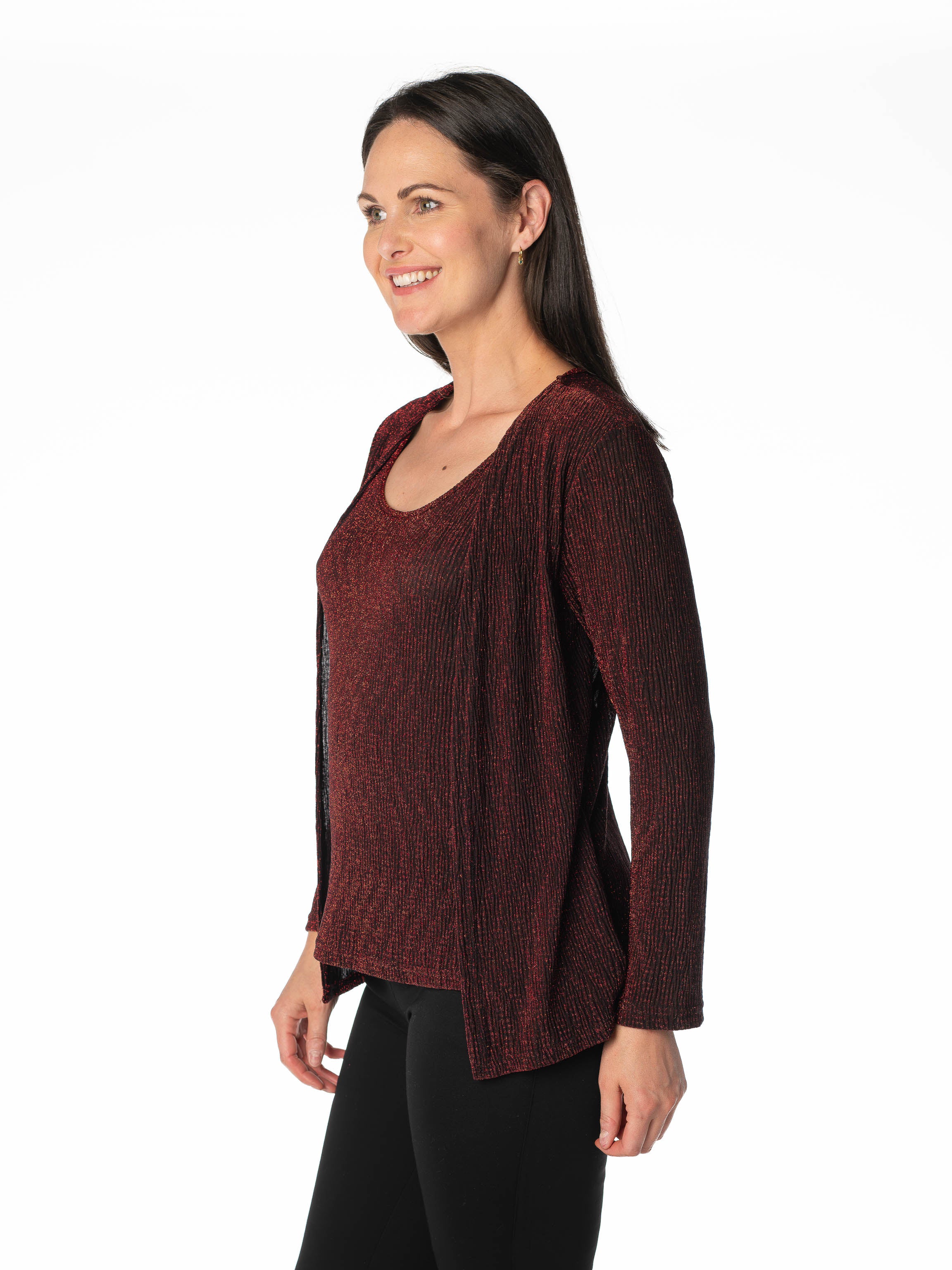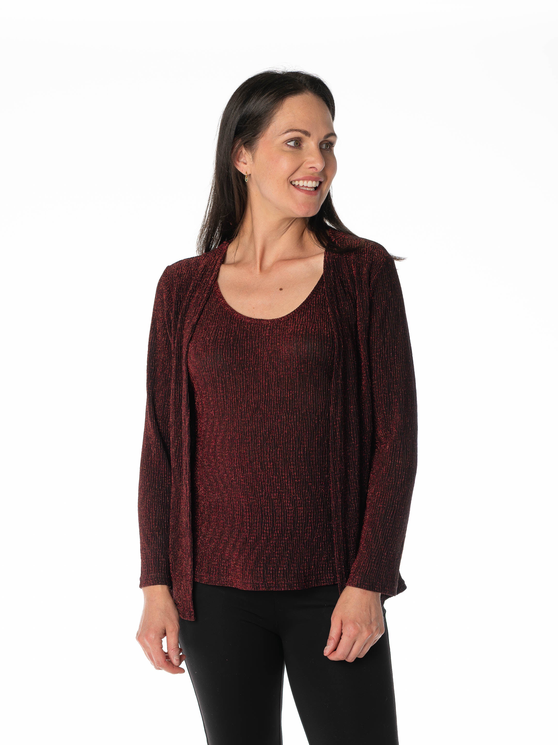 ROUND NECK GLITTERED FULL SLEEVE CARDIGAN