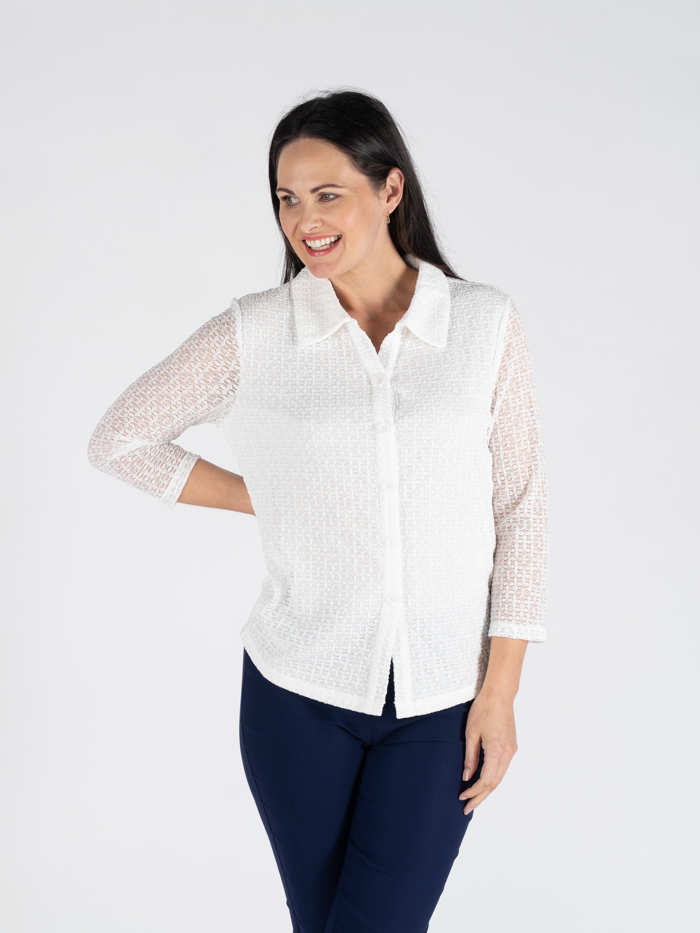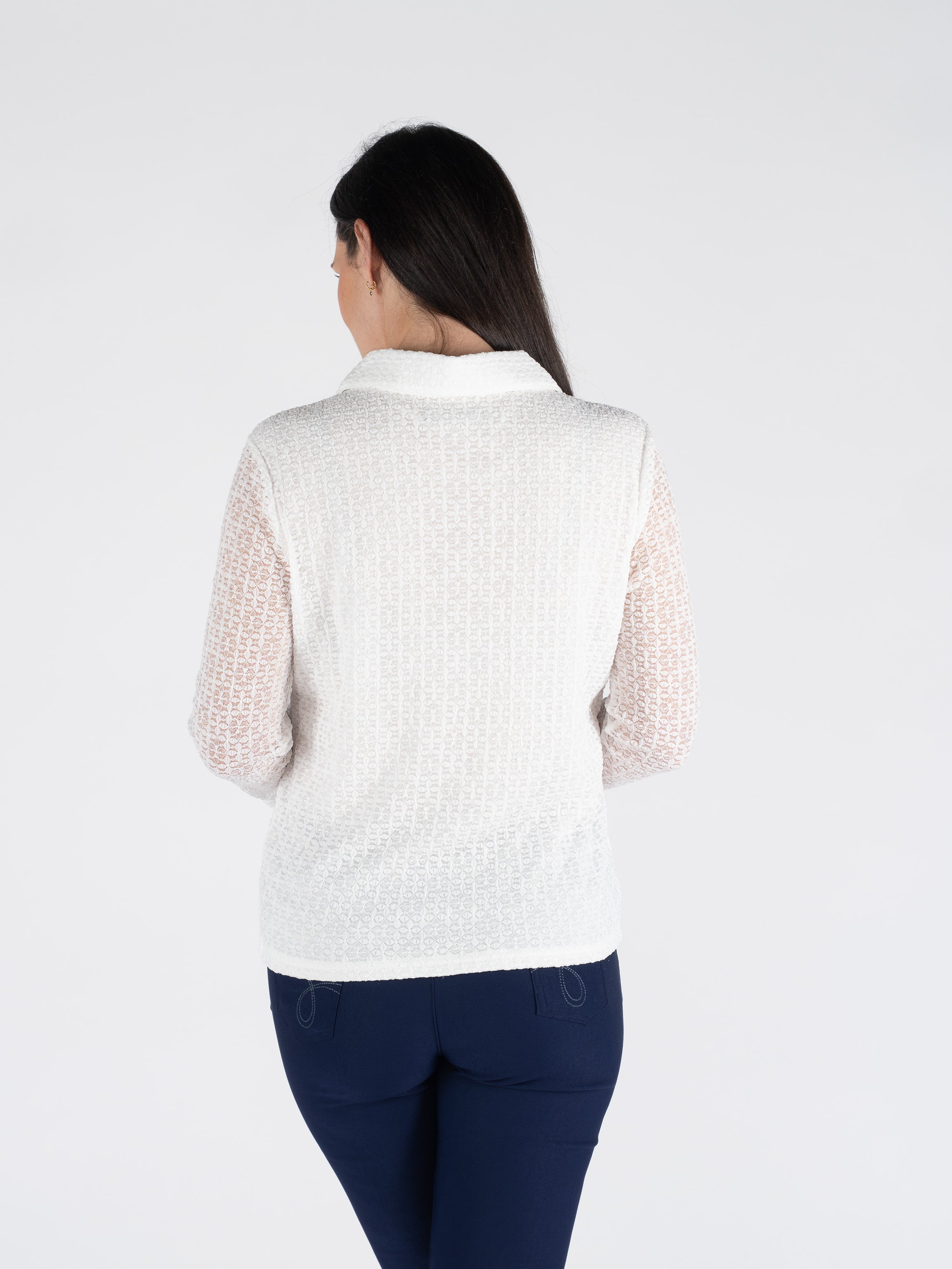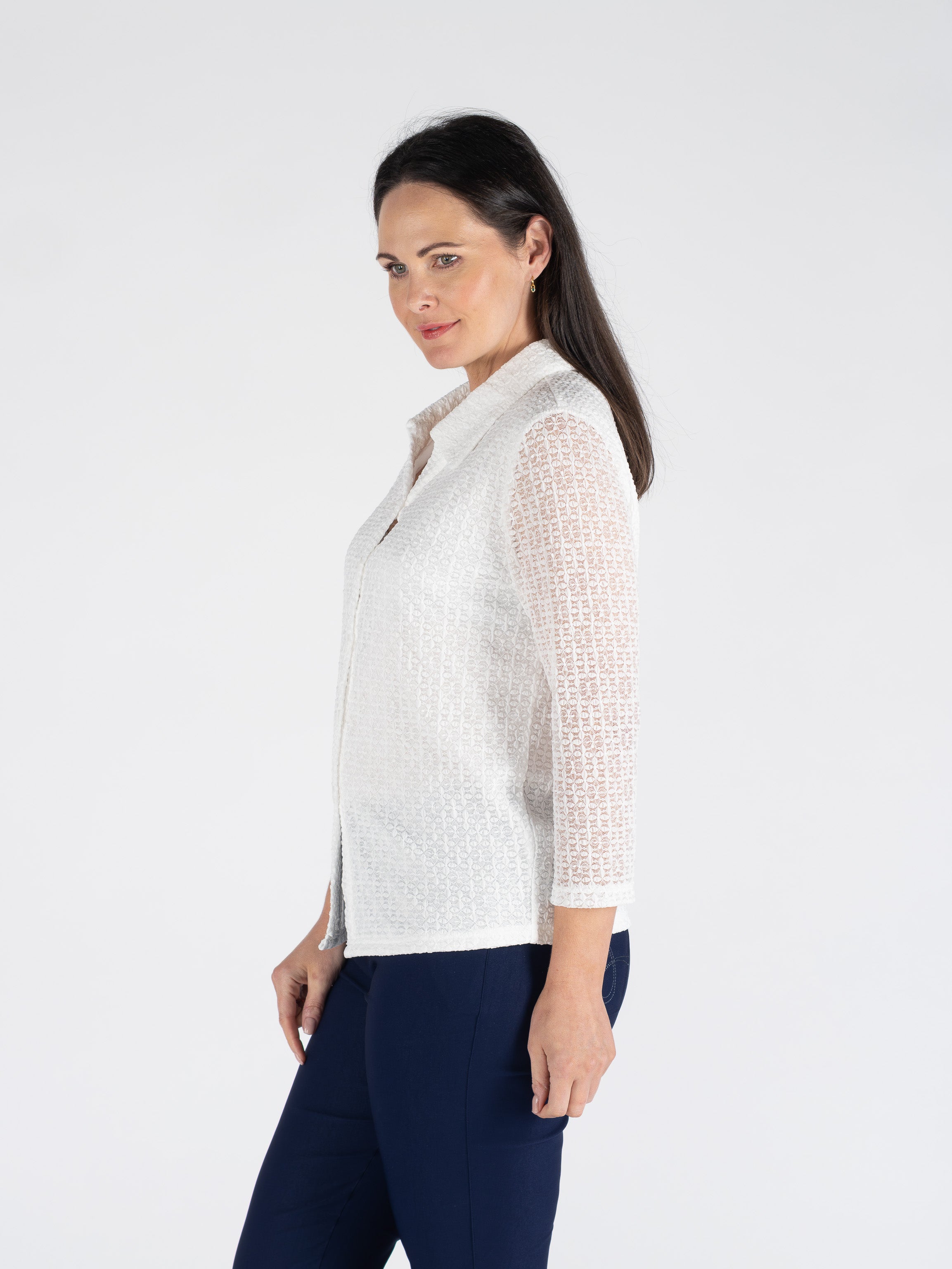 TEXTURED LACE BLOUSE WITH COLLAR 3/4 SLEEVE