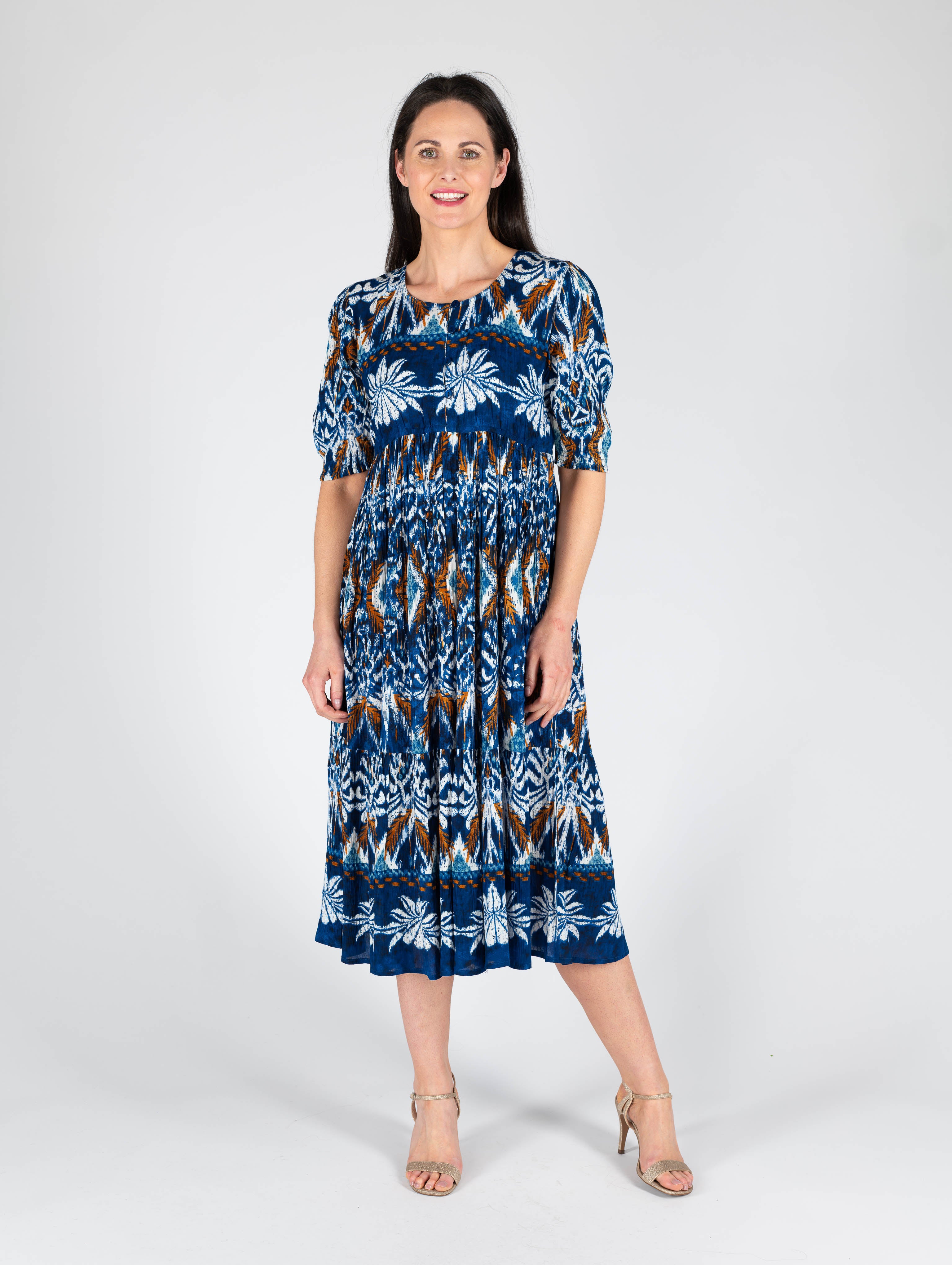 TROPICAL PRINT DRESS WITH ROUND NECKHALF