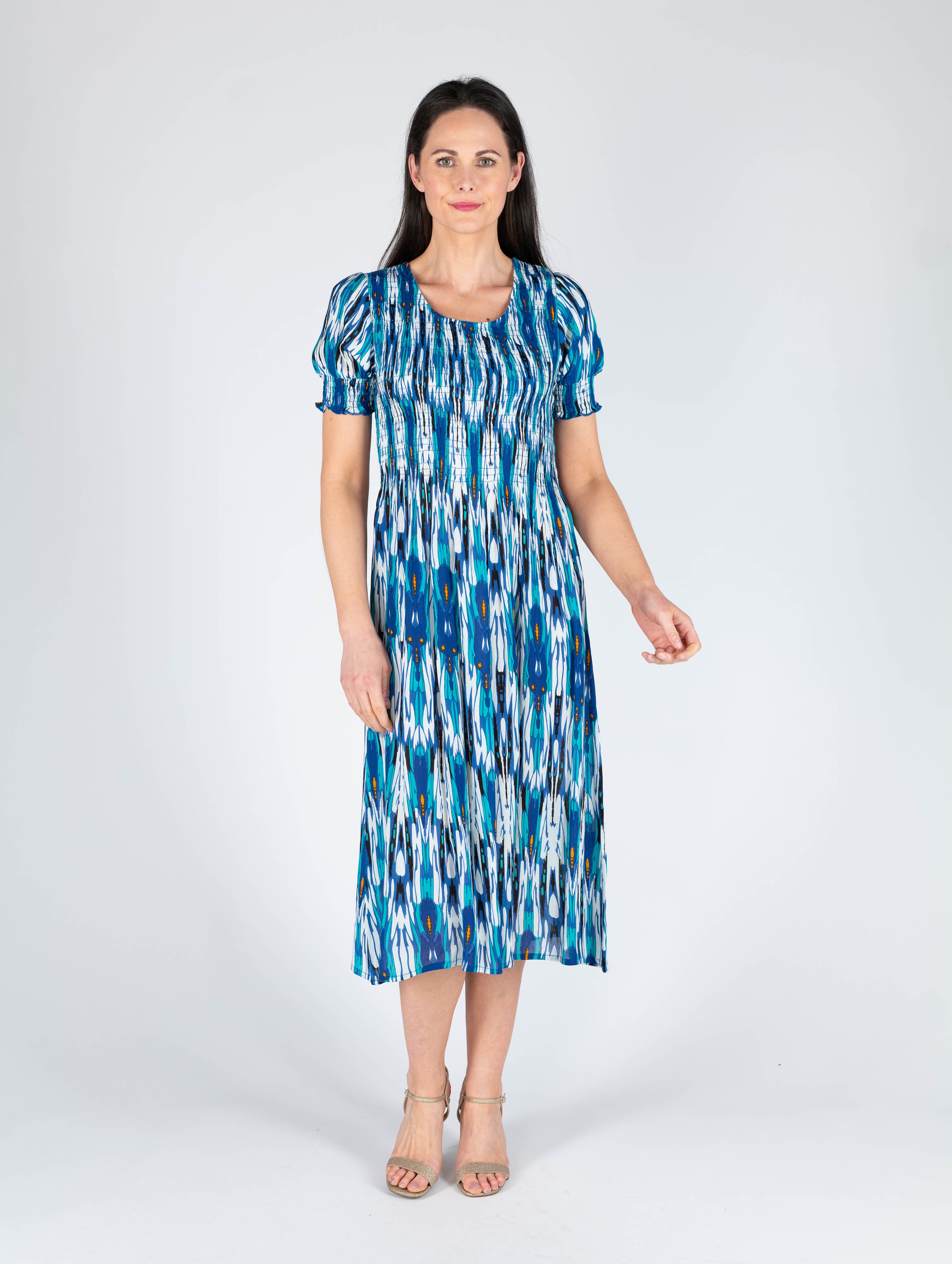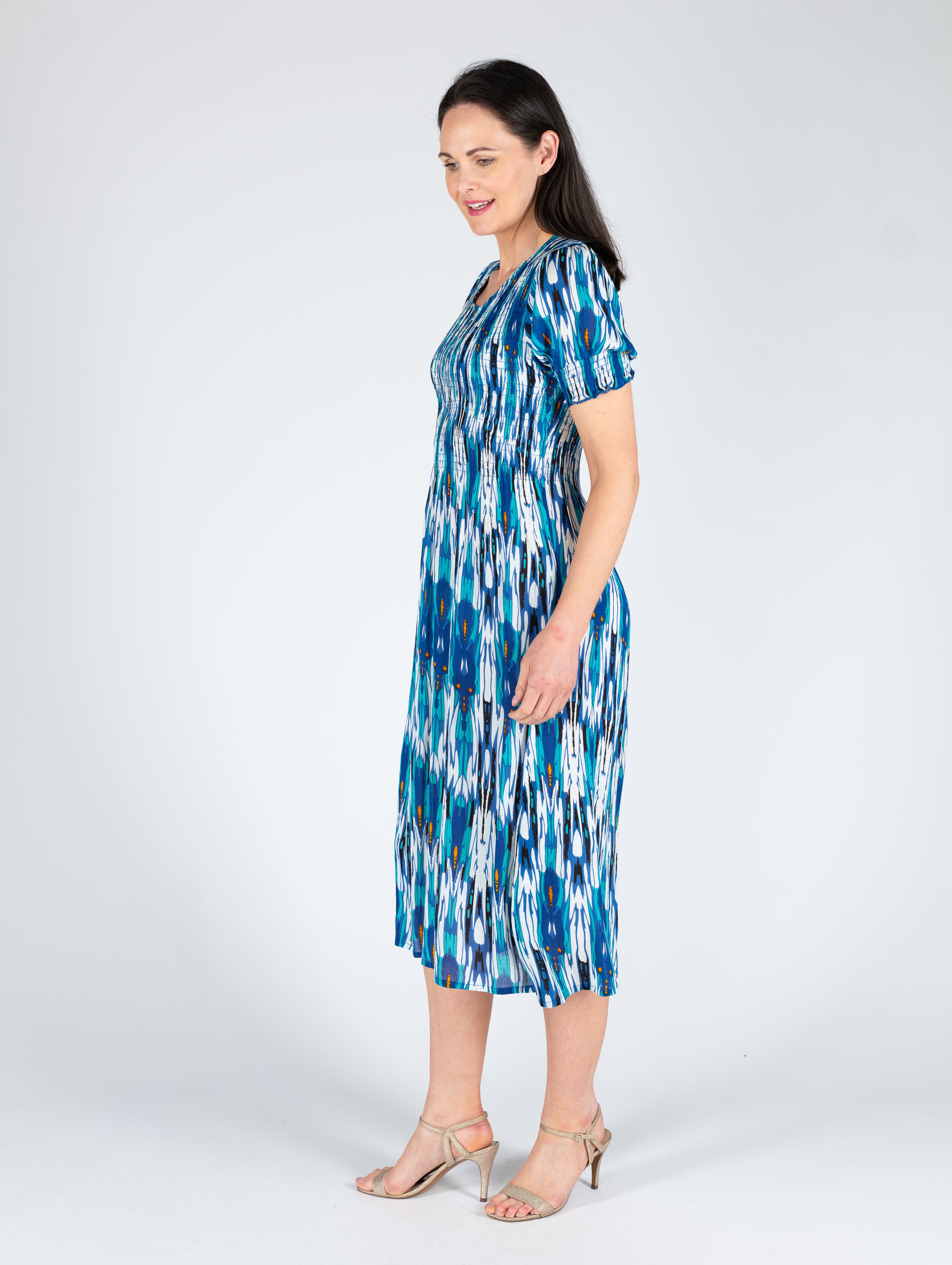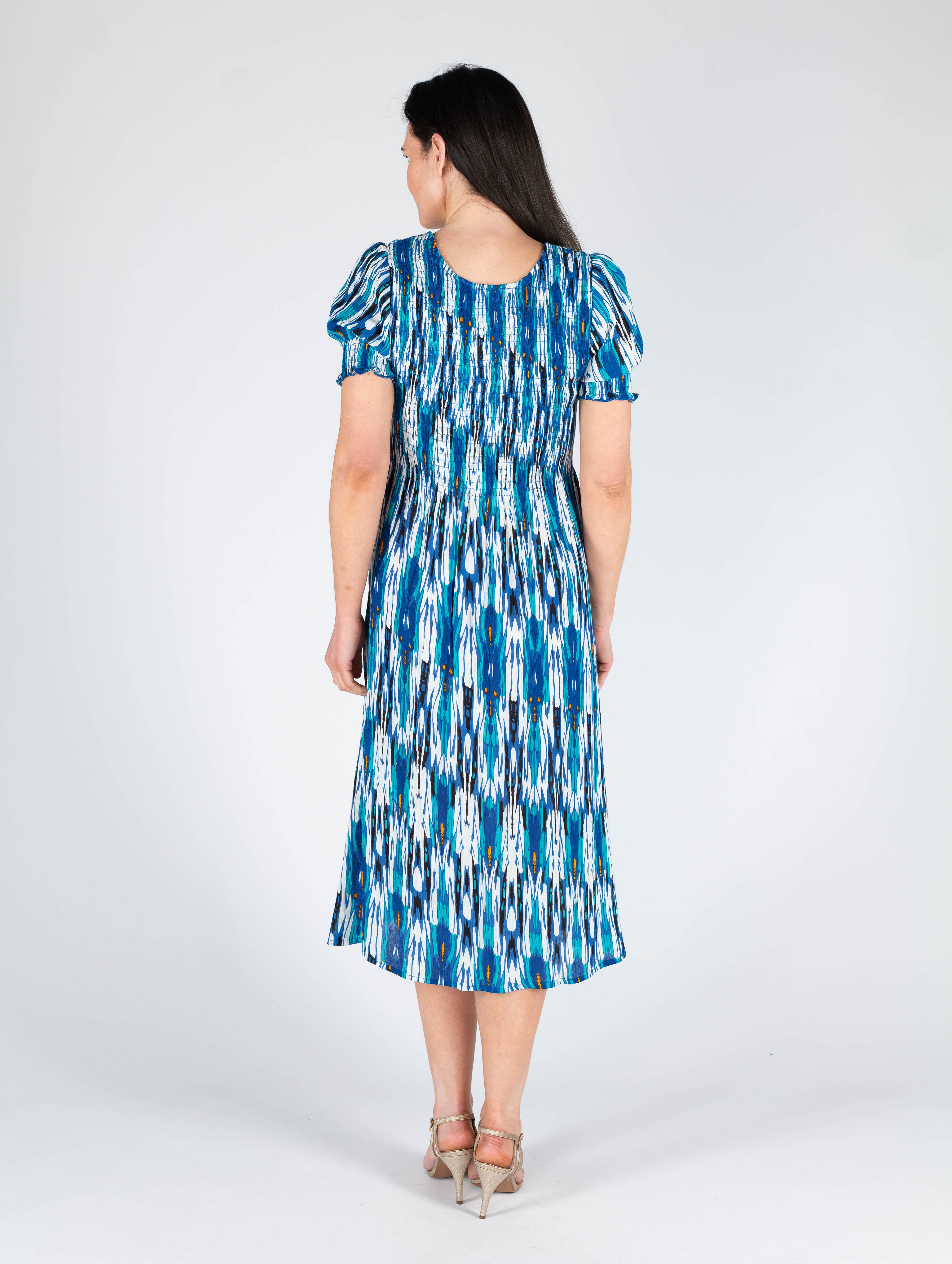 TURQ PRINT PRINTED ROUND NECK CRINKLE DRESS
