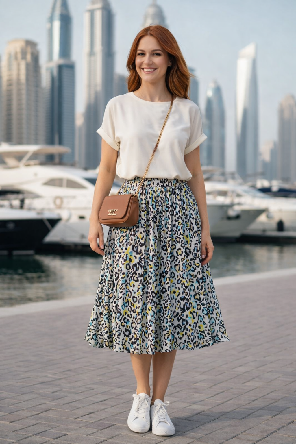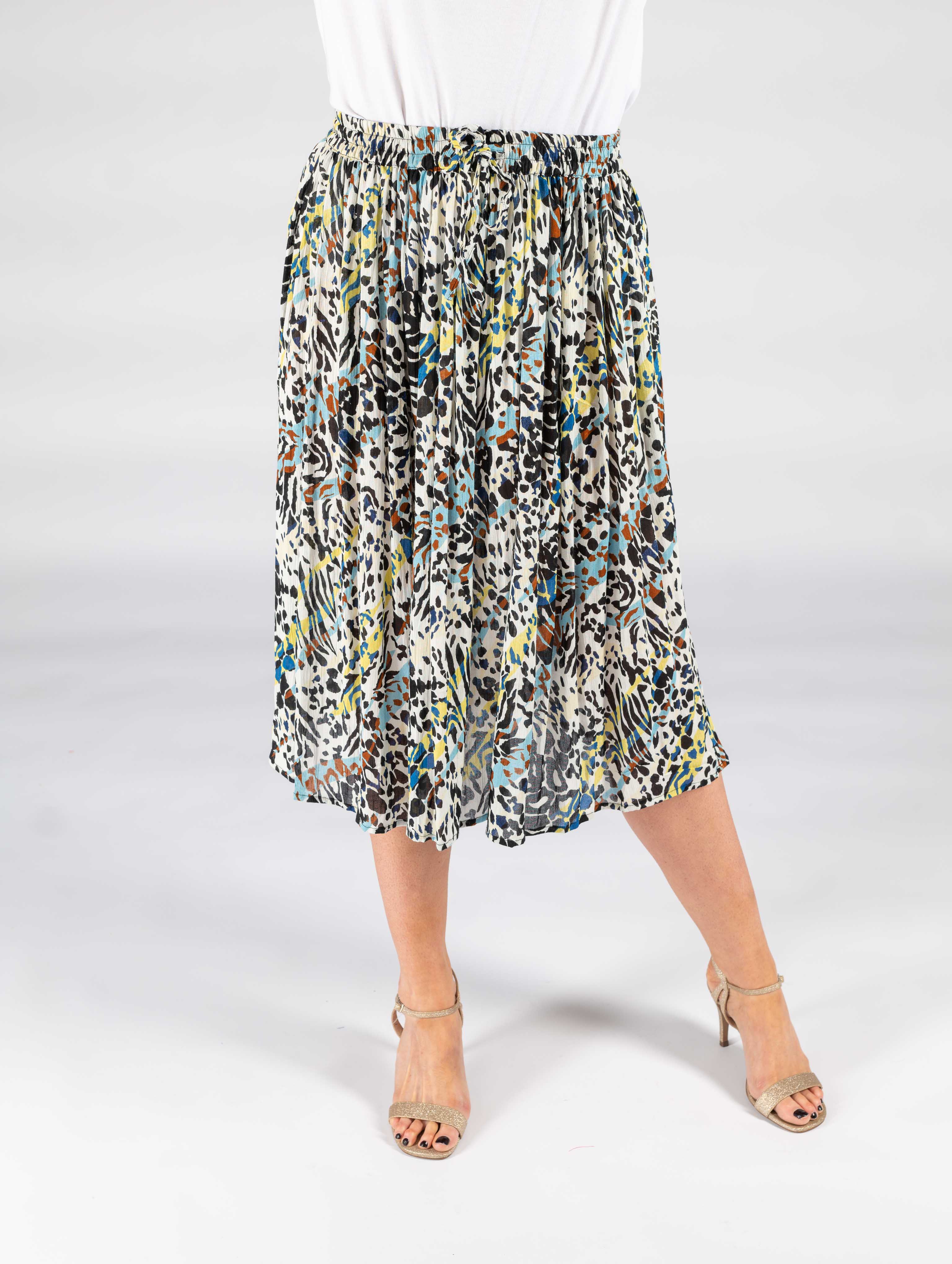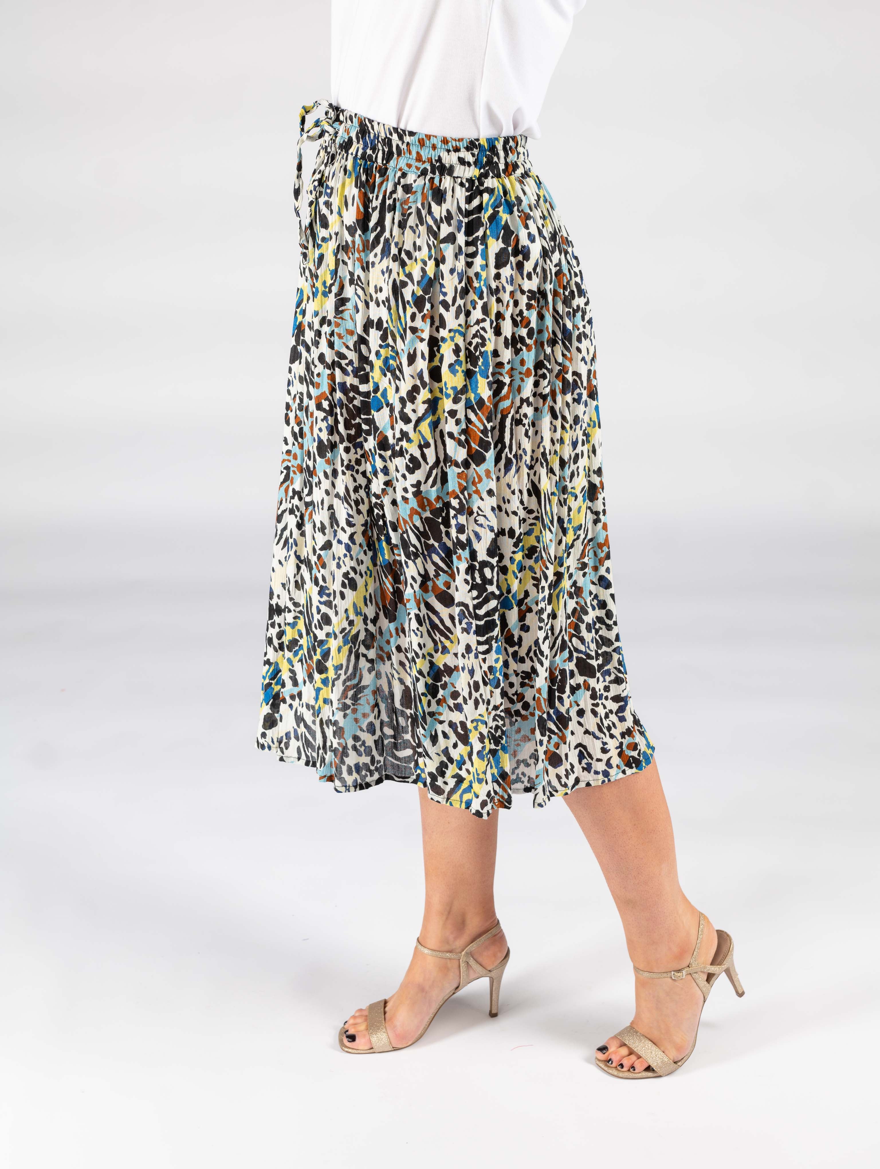 WHITE MULTI ANIMAL PRINT CRINKLE SKIRT