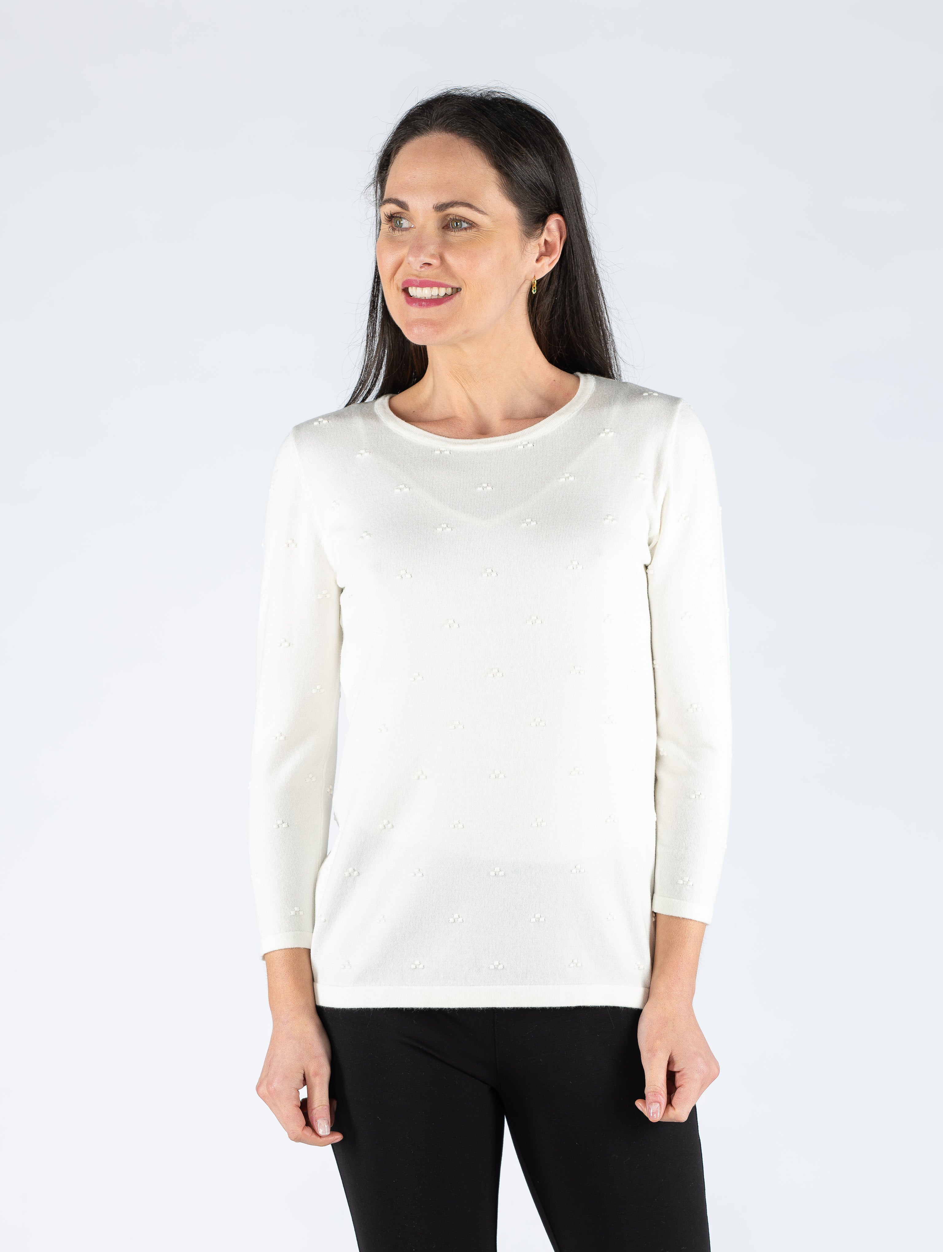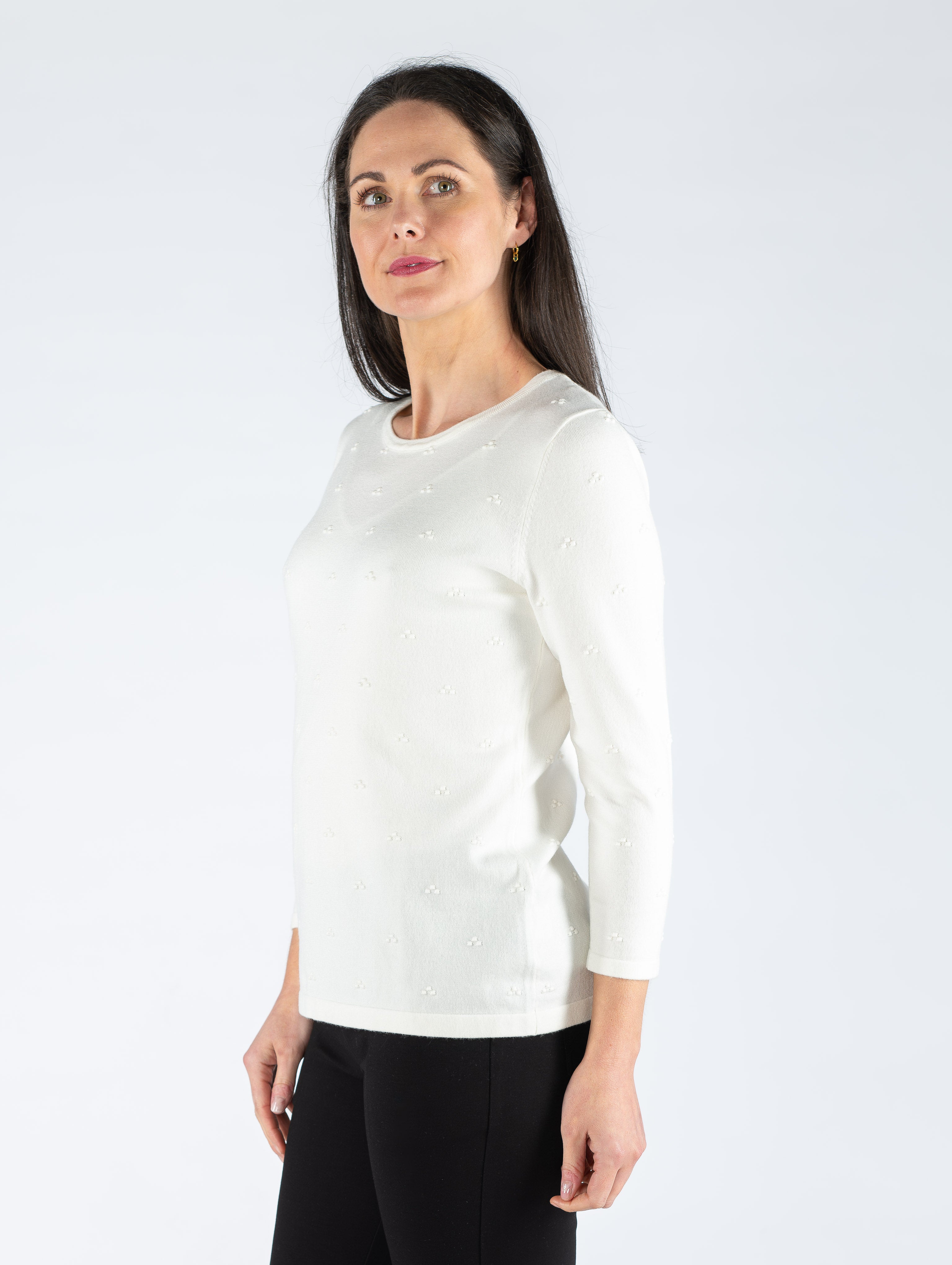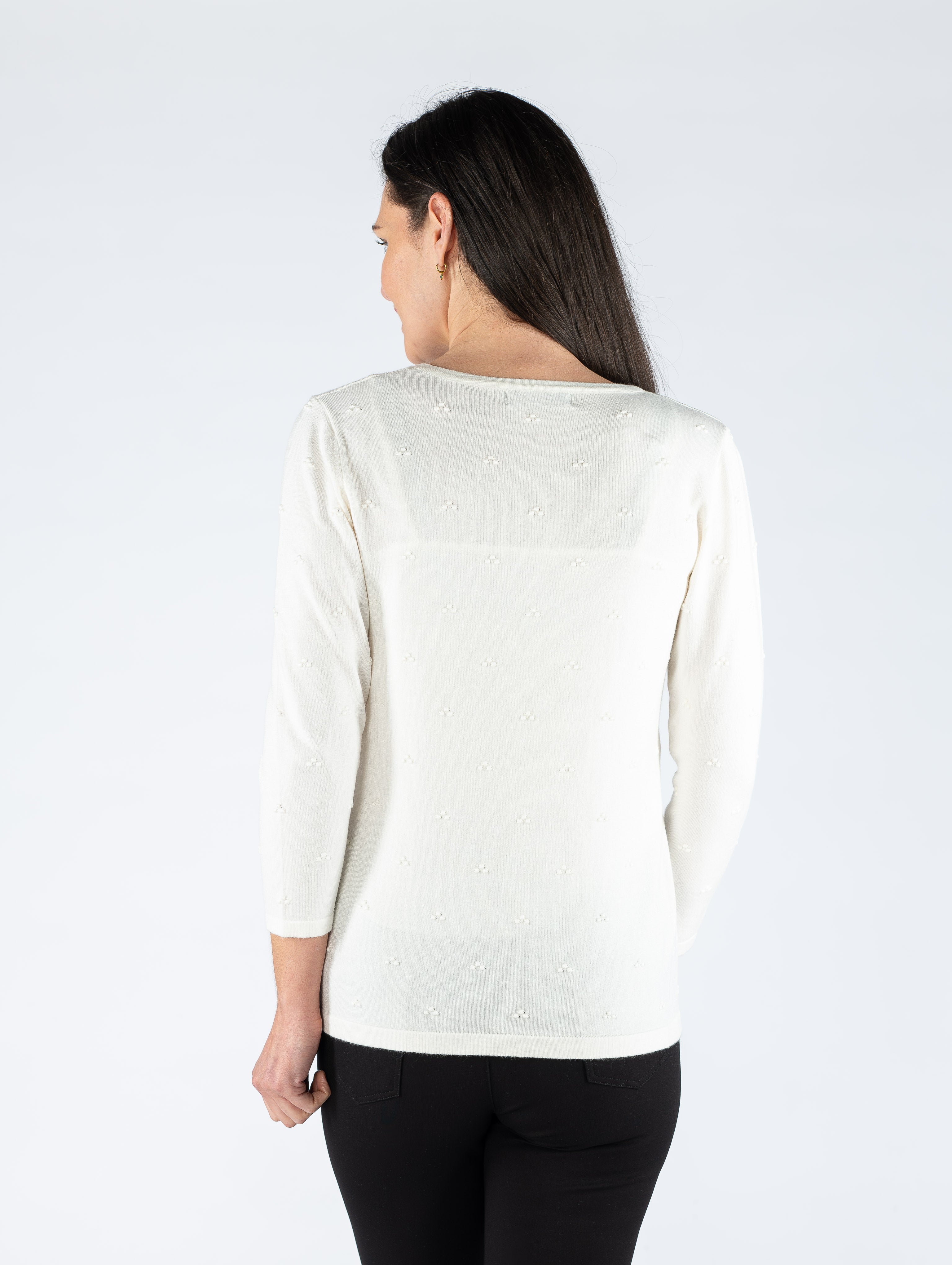 WHITE TEXTURED SPOT JUMPER WITH 3/4 SLEEVE